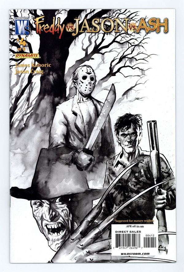 First Printing. Story by Jeff Katz Written by James Kuhoric Art by Jason Craig Cover by Eric Powell The ultimate bloodbath concludes as Ash must face Freddy for the first time in the nightmare realm! Can even the Chosen One stop the Springwood Slasher now that he has the Necronomicon and has the power to warp reality outside the dream world? The Freddy vs. Jason vs. Ash comics event rockets you along a rollercoaster ride of over-the-top horror and classic movie-monster murder! Hail to the horror kings, baby! Co-published with Dynamite Entertainment. On sale January 23 Cover price $2.99.