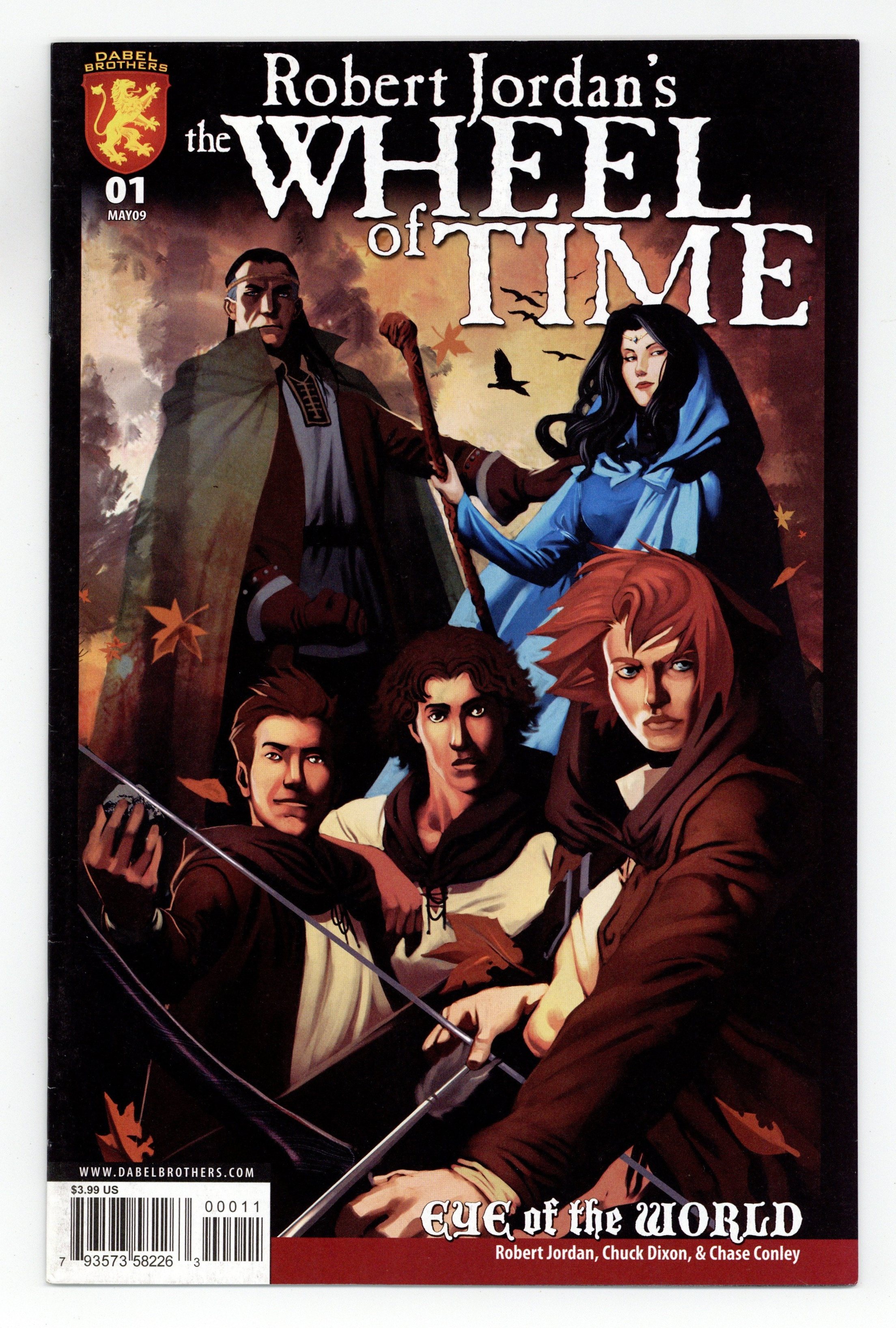 Published May 2009 by Dabel Brothers Production.$25.00Cover by Saliba. (W) Robert Jordan, Chuck Dixon (A) Chase Conley The Wheel of Time turns and Ages come and go, leaving memories that become legend. Legend fades to myth, and even myth is long forgotten when the Age that gave it birth returns again. In the Third Age, an Age of Prophecy, the World and Time themselves hang in the balance. What was, what will be, and what is, may yet fall under the Shadow. Strangers have come to the village of Emond's Field, located in Two Rivers, during the Bel Tine holiday. With theses strangers come stories of the outside world: tales of war and of a man who claims to be the Dragon Reborn, the one prophesized to save the world, and also to destroy it in his madness. For it is known that no man can channel the One Power without going horribly insane! Cover price $3.99.
