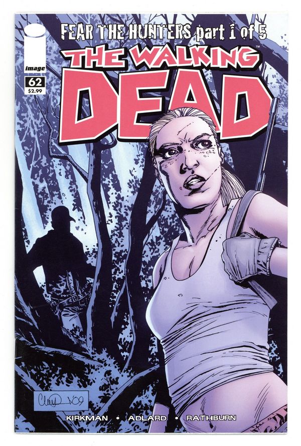 Written by ROBERT KIRKMAN. Art and Cover by CHARLIE ADLARD and CLIFF RATHBURN. THE HUNT BEGINS! It all starts here, the most explosive story-arc in WALKING DEAD history. Who lives? Who dies? Watch as our characters discover just how dangerous the Road To Washington actually is. 32 PAGES / BW MATURE READERS Cover price $2.99.