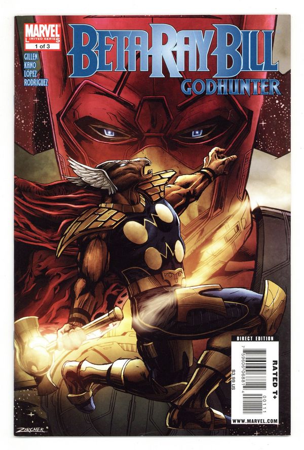 Written by KIERON GILLEN. Art by KANO. Cover by PATRICK ZIRCHER. Galactus! He's devoured worlds since the dawn of the universe. Consuming the Korbinites' home was nothing special. But for Beta Ray Bill - oathbrother to Thor and the Korbinites' defender - it was a failure of his life's duty...and has given him a certain clarity. How can a hero suffer such a threat to his existence? Beta Ray Bill sets forth to hunt down Galactus, force him to his knees and make him pay - with a plan so audacious even the Planet Eater will feel fear... 40 pages, new material and reprints, Full color. Cover price $3.99.