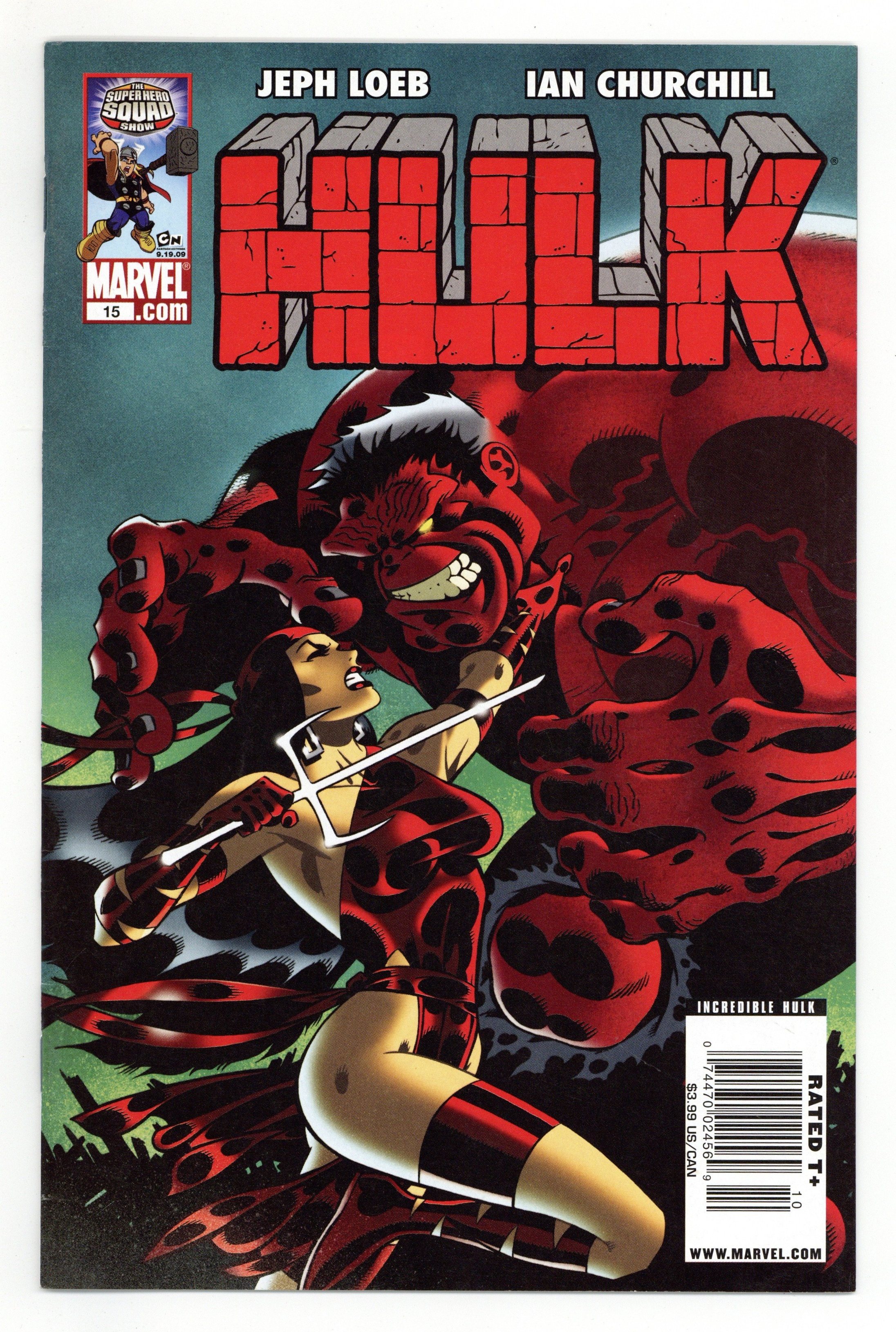 Cover by IAN CHURCHILL. CODE RED: Part 2 of 4 - Written by JEPH LOEB. Art by IAN CHURCHILL. The battle you've been waiting for: THE RED HULK VS. WOLVERINE. Plus: Deadpool! Elektra! Punisher! vs. X-Force! Plus: a tale of the colorful Hulks by Audrey Loeb & Dario Brizuela. All this and a shock ending that will have all of Marveldom twittering! 32 pages, full color. Cover price $3.99.