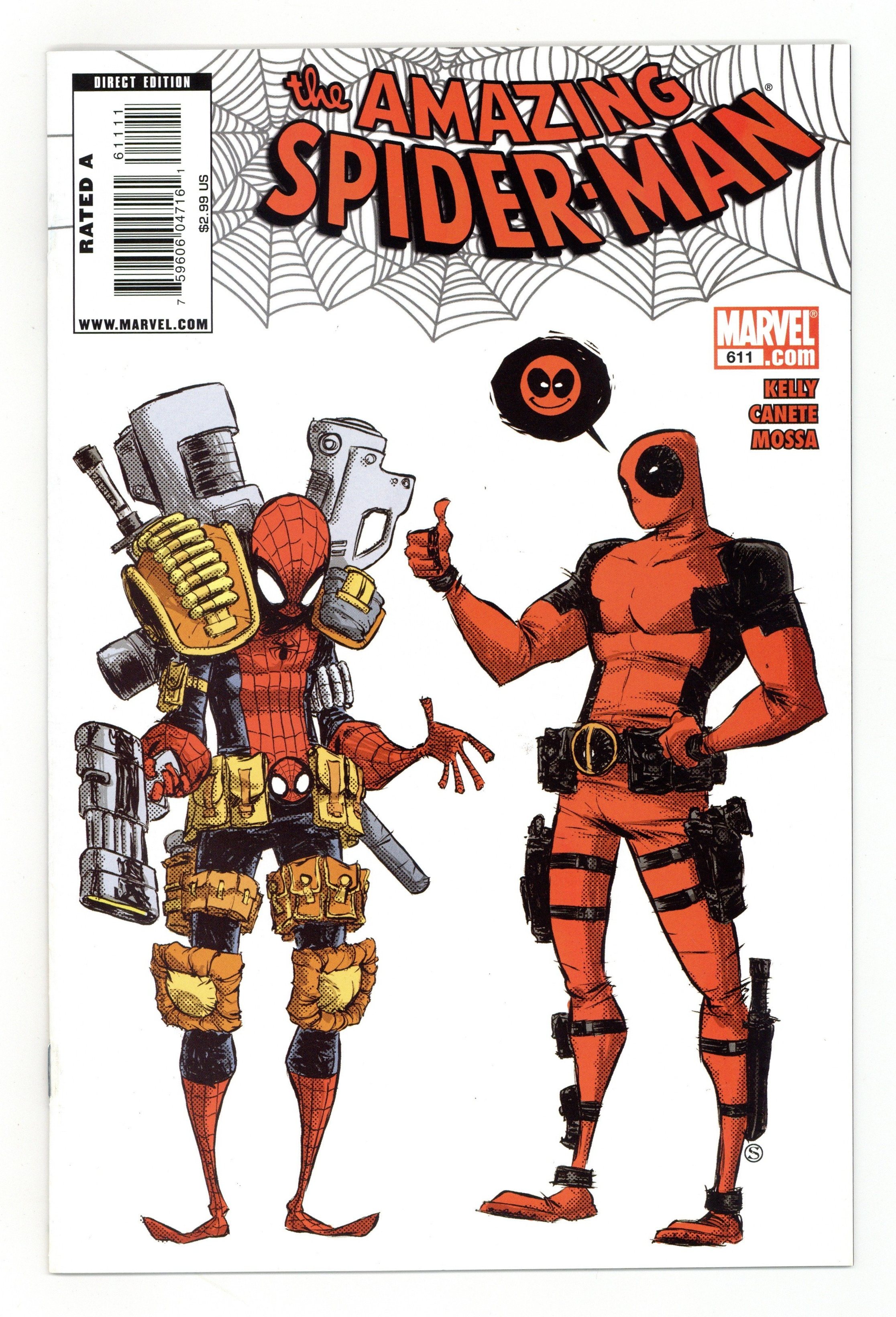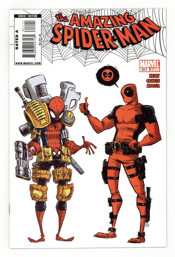 Written by JOE KELLY. Art by ERIC CANETE. Cover by SKOTTIE YOUNG. Deadpool-Man, Deadpool-Man - does whatever a Deadpool can...spins a web any size - but not really...Deadpool's don't have webs. Look out! Here comes the Deadpool-Man! What force on Earth has brought the Merc with a Mouth and the Webheaded Wonder closer together than Quesada and Twitter? And how does it tie to the upcoming Spider story The Gauntlet?! And finally - WHO IS LADY STILT-MAN?! Joe Kelly (DEADPOOL CLASSIC; This issue of AMAZING SPIDER-MAN) and Eric Canete (IRON MAN: ENTER THE MANDARIN) bring you 2079's top Marvel Comic of the last 70 years (sorry, Dazzler #500)! 36 pgs. Cover price $2.99.