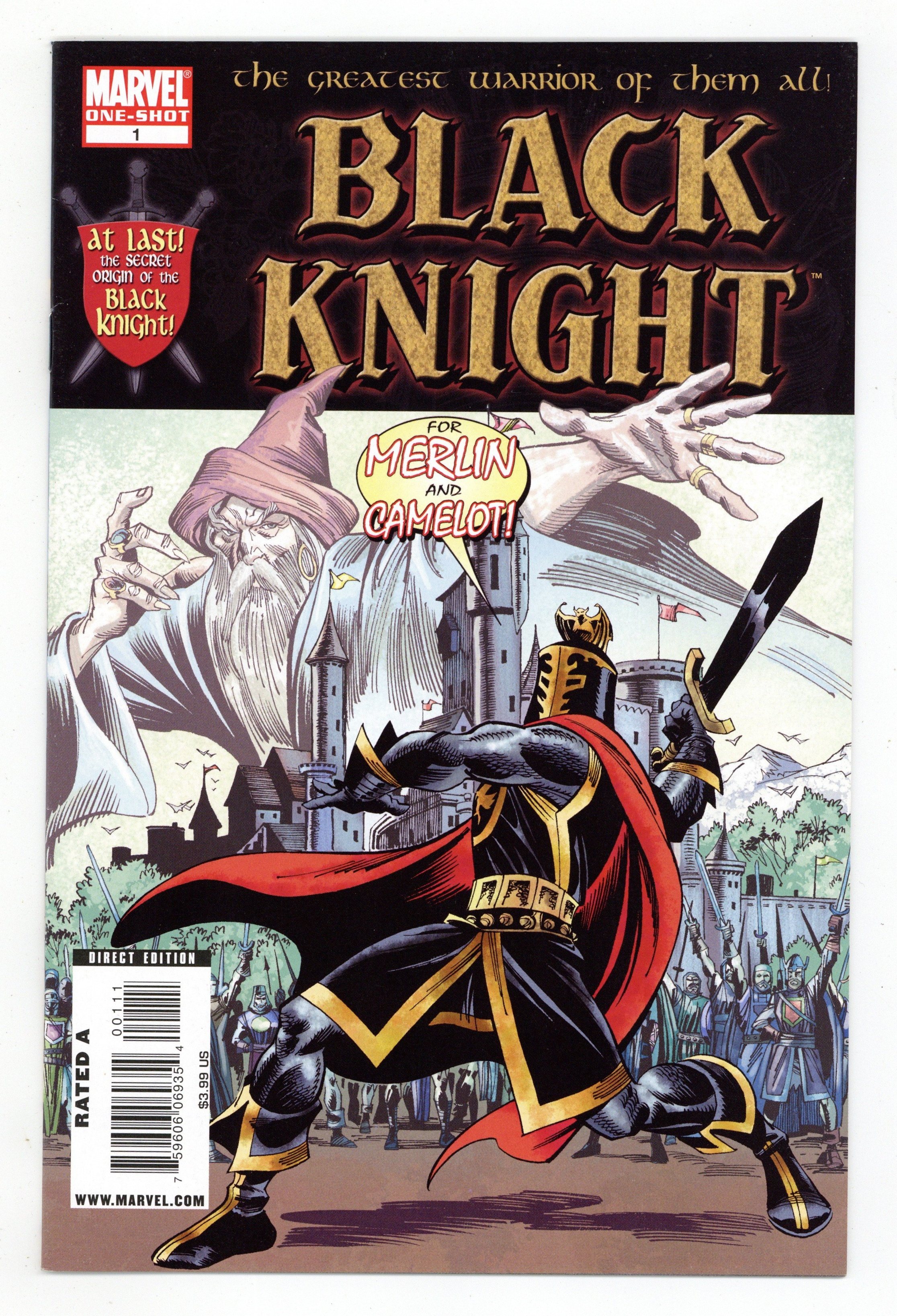 $11.50Written by Tom DeFalco. Art and Cover by Ron Frenz. The secret origin of the original Black Knight is finally revealed as Vampires, Zombies, Werewolves and Demons from the darkest realms confront Sir Percy of Scandia and his twin brother on their desperate quest to find Chaos, the dreaded Doombringer--the only weapon capable of defeating Excalibur, the legendary battle sword of King Arthur! 40 pages, full color. Cover price $3.99.