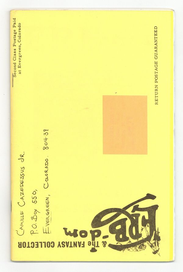 Published Jun 1973 by Camille Cazedessus, Jr.$15.50A fanzine devoted to Edgar Rice Burroughs. ERBdom #71 is devoted almost exclusively to reprinting the first part of "The Terrible Tenderfoot", which was first published in Thrilling Adventures V33#1. Back cover features a black and white photo of Edgar Rice Burrough. 5 1/2 in. by 8 1/2 in. 44 pages. Cover price $0.50.
