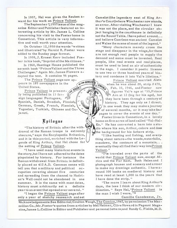 Published Apr 1962 by Camille Cazedessus, Jr.$11.50ERB-dom was one of the best fanzines focusing on Tarzan creator Edgar Rice Burroughs. Issue #4 includes the following articles: a letter from Joan Burroughs Pierce and Edgar's son John Coleman Burroughs, John Carter checklist, and Hal Foster and Prince Valiant 25 Years of Adventure (with art by Foster). 8.5 x 11; black and white, 12 pgs. April, 1962. Edited and published by Camille Cazedessus. Cover art by N. McDonald. Cover price $0.25.