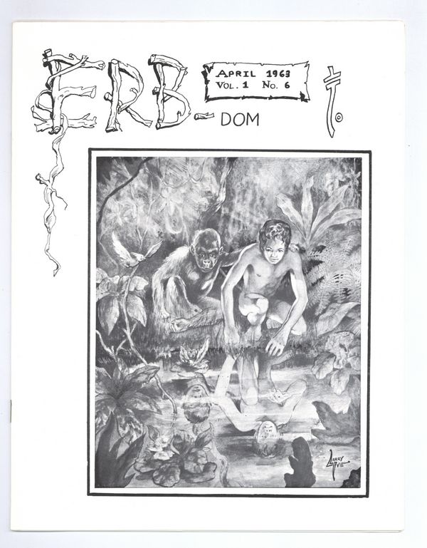Published Apr 1963 by Camille Cazedessus, Jr.$11.50ERB-dom was one of the best fanzines focusing on Tarzan creator Edgar Rice Burroughs. Issue #6 includes the following articles: letters from Russ Manning, John Coleman Burroughs, and Gaylord DuBois, Burroughs Artist Larry Ivie (with art and photos), The Art of Jetan by Mike Resnick, The History of Life on Barsoom by Resnick, Tips for Collectors, and Toofani Tarzan (Indian-made movie). 16 pgs. April, 1963. Edited and published by Camille Cazedessus. Cover art by Ivie. Cover price $0.25.