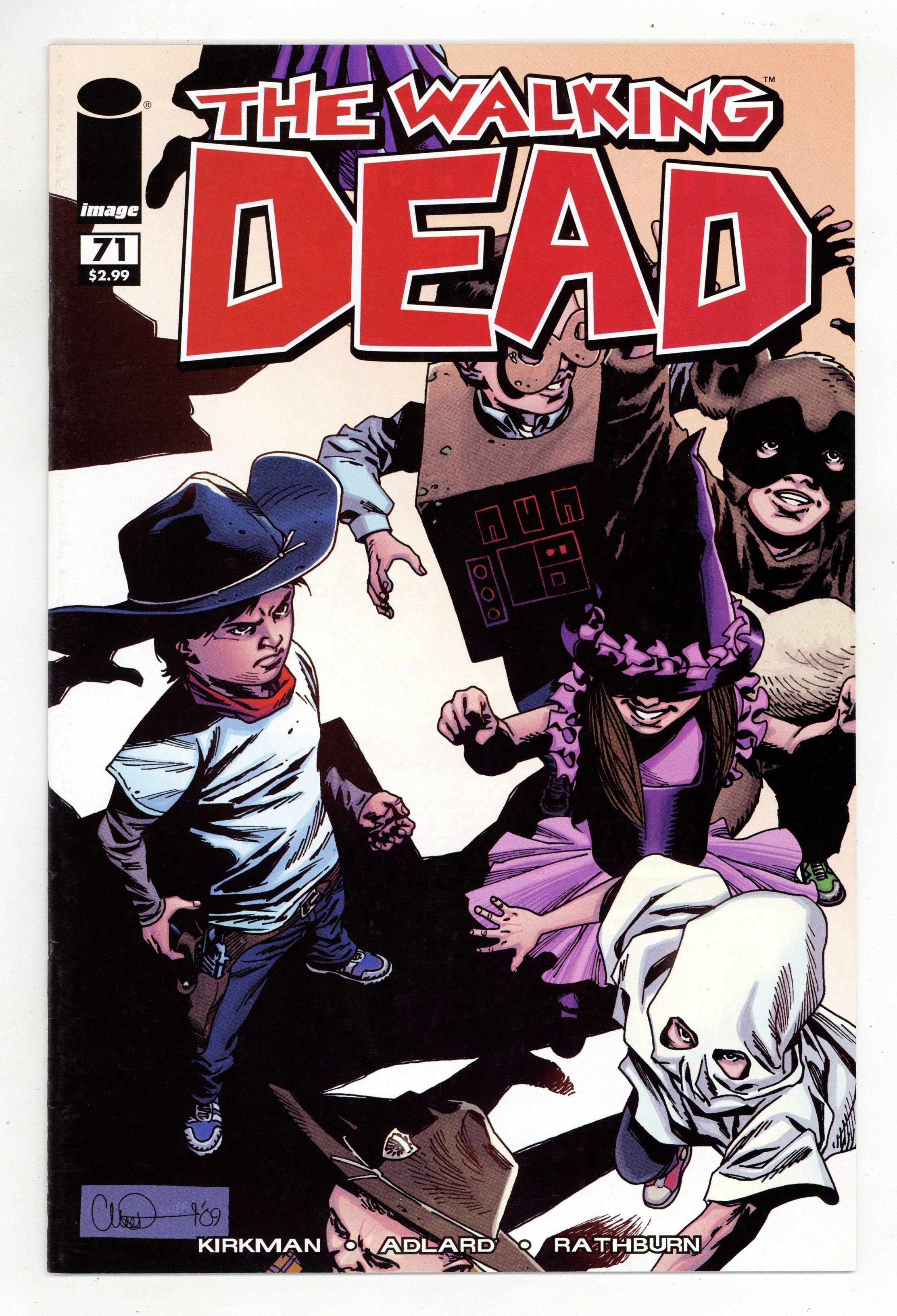 Written by Robert Kirkman. Art and Cover by Charlie Adlard and Cliff Rathburn. Adjusting to this new life won't be easy. Characters in this issue: Dr. Denise Cloyd; Rosita Espinosa; Glenn; Maggie Greene; Carl Grimes; Rick Grimes; Heath; Morgan Jones; Michonne; Mikey; Douglas Monroe; Regina Monroe; Nicholas; Olivia; Eugene Porter; Scott; Sophia; Father Gabriel Stokes. 28 pages, B&W (gray tones). RETAILER WARNING: MAY NOT BE SUITABLE FOR ALL AGES Cover price $2.99.