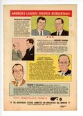Promotional comic for Robert Morgenthau, Democratic candidate for governor in New York. No date, but one page includes endorsements from President John F. Kennedy, former President Harry S. Truman, and New York City mayor Robert Wagner, which places the publication date in the early 60s, probably 1962. 7-in. x 10-in.; full color; 8 pages; newsprint. Cover price $0.10.