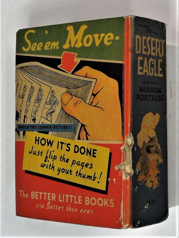 $6.00Desert Eagle and the Hidden Fortress (1941 Whitman BLB) #1431, flip pictures. 3.5" x 4.5", 432 pages, B&W.
