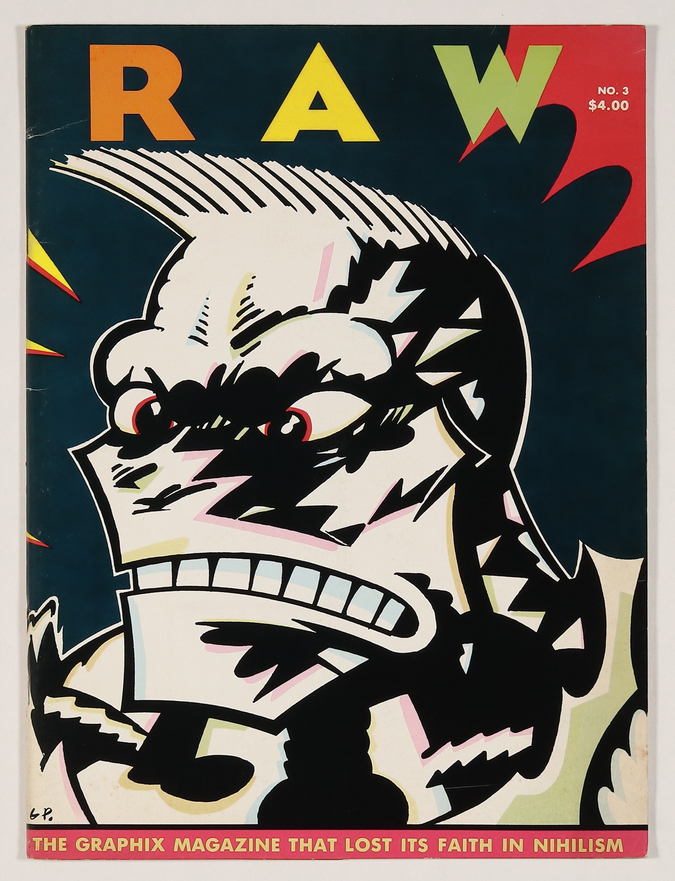 Chapter 2 of Maus by Art Spiegelman appears as a 16-page bound-in insert. Also in this issue: art by Rick Geary, Charles Burns, and others. Gary Panter cover. 10.5 x 14 in.; black and white; 48 pages (plus Maus). Cover price $4.00.