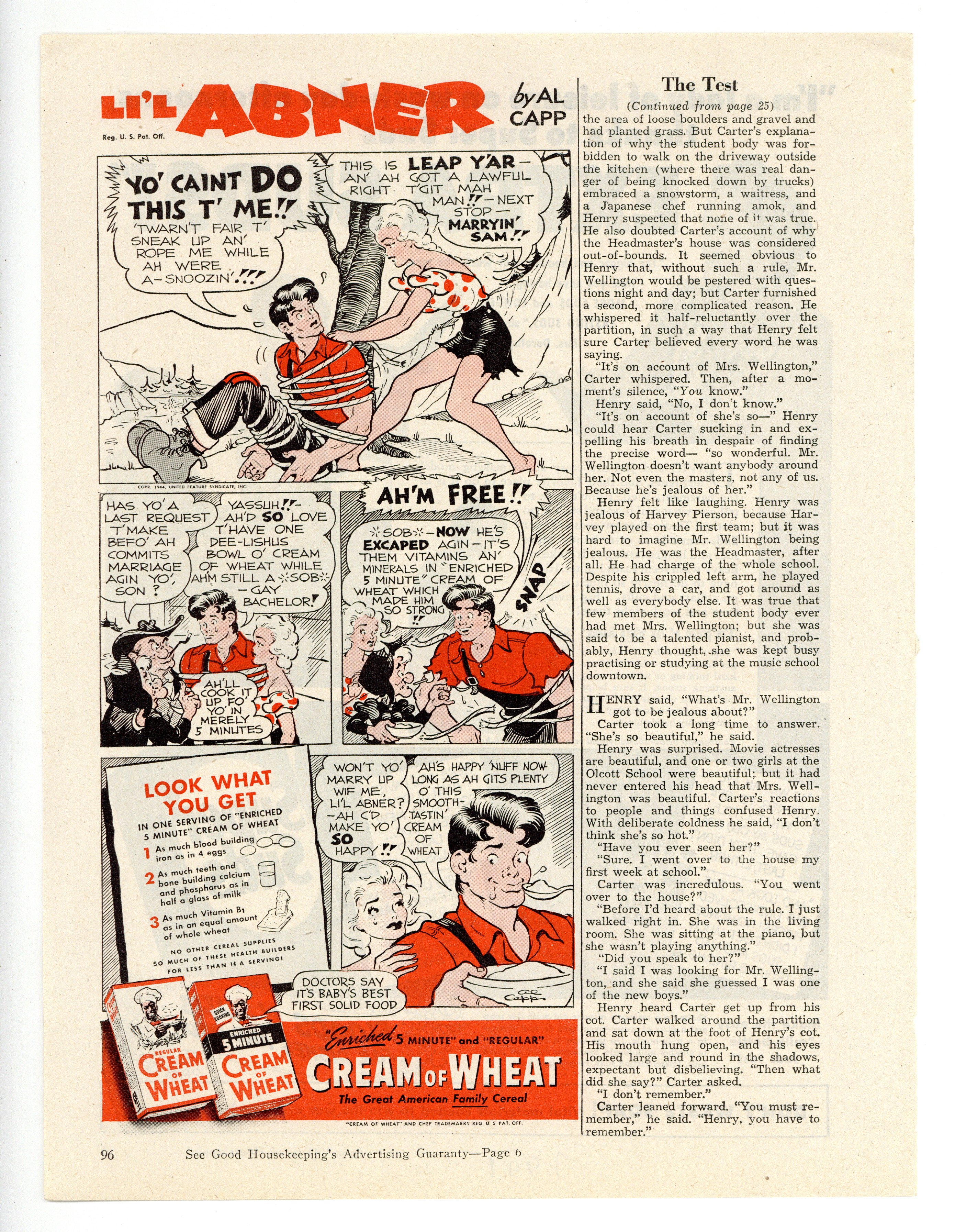 $2.65Half-page ad by Al Capp featuring Li'l Abner and the gang. Copyright 1944. Measures 5.25 in. x 14 in. or 4.75 in. x 11.5, depending upon the magazine that published the ad. Black and white plus red spot-color.