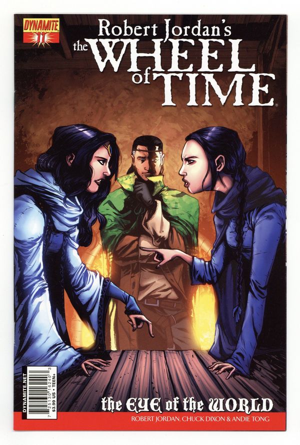 Published Jun 2011 by Dynamite Entertainment.$2.50Written by ROBERT JORDAN & CHUCK DIXON Art and cover by ANDIE TONG Following a nightmarish conversation, Rand discovers more about the connection between himself, Perrin, and Mat and, after Perrin begs out, is left on his own to explore the city of Baerlon. During the course of the day Rand meets Min, whose mysterious visions confuse and scare him, and runs across an unexpected face from the past that calls his trust in Moiraine into question. Cover price $3.99.