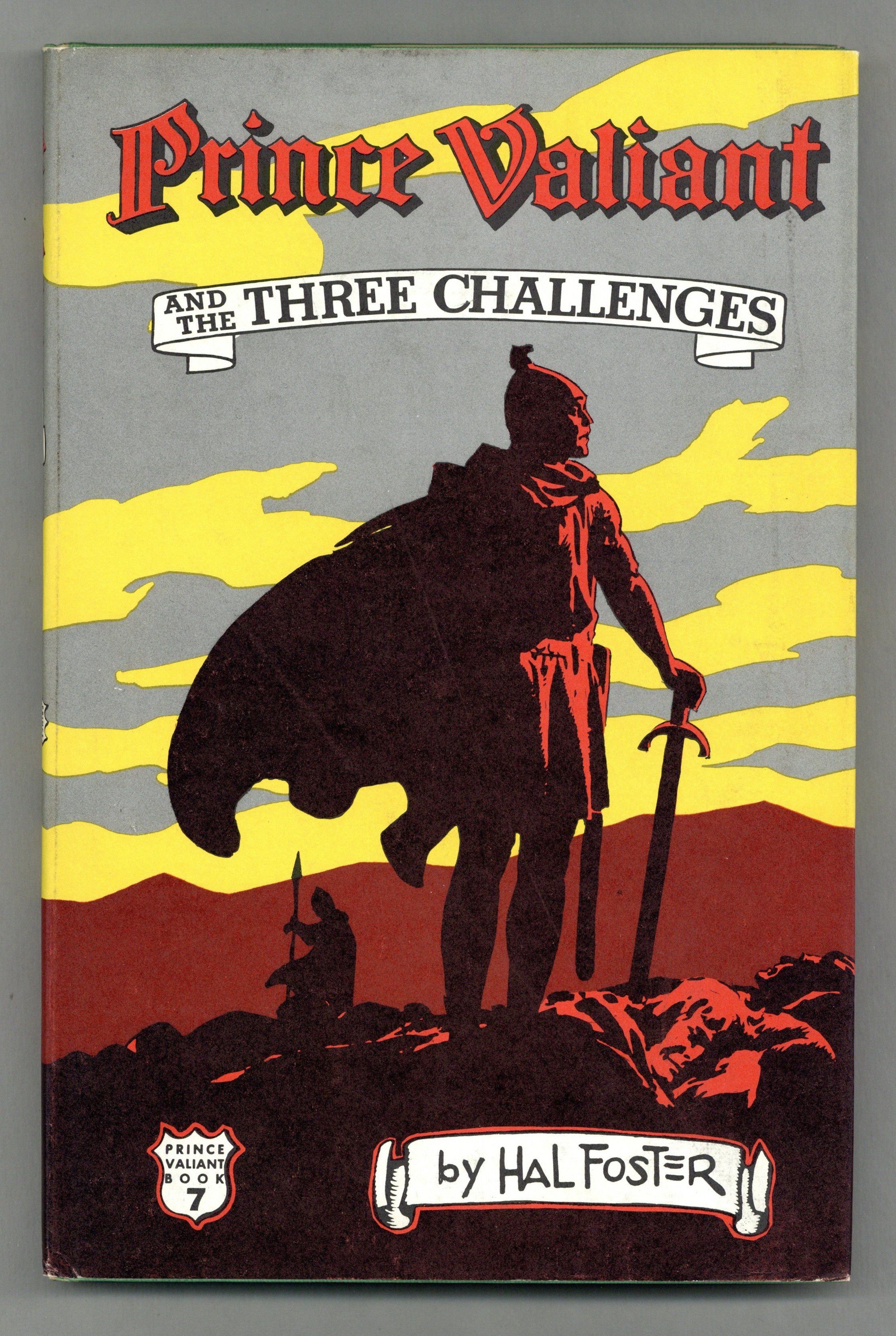 Hastings Edition - Volume 7 - 1st printing. "Prince Valiant and the Three Challenges!" Story and art by Hal Foster. Brave Prince Valiant must face three harrowing challenges: the trouble-making and ruthless King Tourien in Cornwall; dark sorcery wreaking havoc upon the good people of Wales; and savage men who paint themselves blue and green for stealth in the forest and seek to invade the Kingdom of Camelot! Hardcover, 96 pages, B&W. NOTE: Prose story with B&W illustrations on every page. Cover price $3.95.