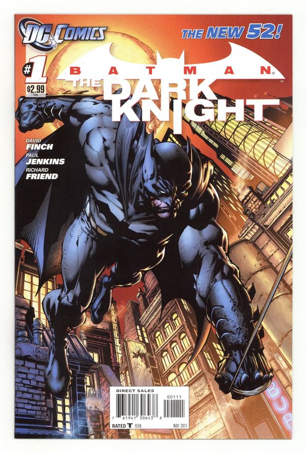 FIRST PRINTING Written by PAUL JENKINS (script/co-plot) and DAVID FINCH (co-plot). Cover by DAVID FINCH and RICHARD FRIEND. Art by DAVID FINCH and RICHARD FRIEND. The Dark Knight struggles against a deadly - yet strangely familiar - foe in this phenomenal debut issue from superstar writer/artist David Finch (BRIGHTEST DAY, ACTION COMICS)! As a mysterious figure slinks through the halls of Arkham Asylum, Batman must fight his way through a gauntlet of psychos, and Bruce Wayne faces the unexpected legal ramifications of Batman Incorporated! Cover price $2.99.
