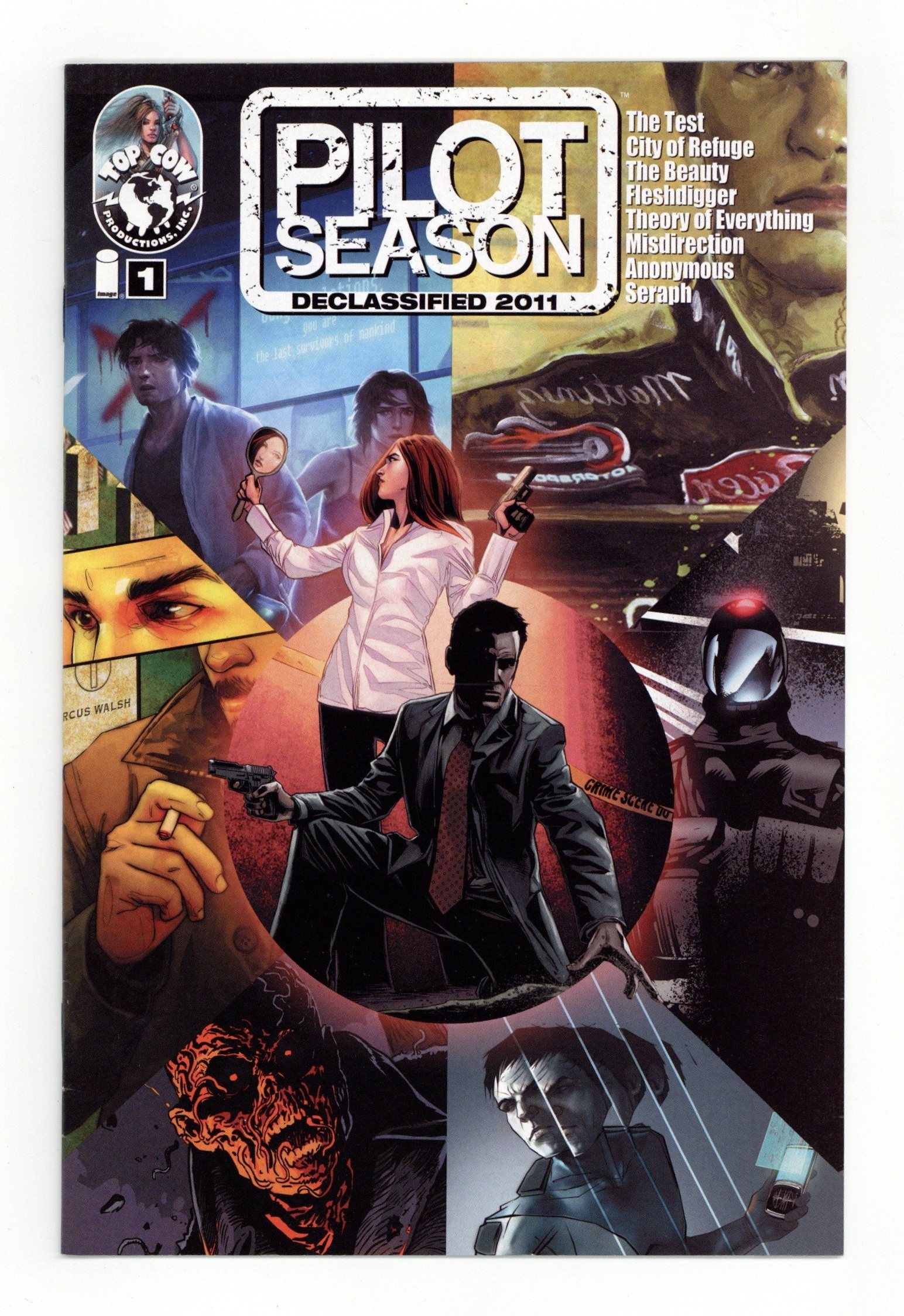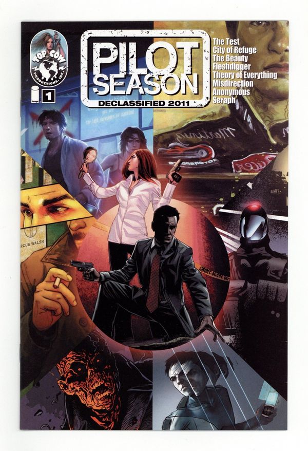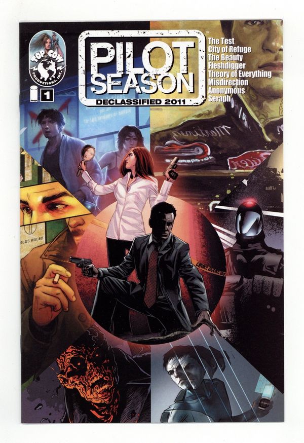 story TOP COW'S FINEST art / cover TOP COW'S FINEST TAKE CONTROL! After five years, the annual Pilot Season has become a comics institution and a unique engine for debuting new ideas and properties into comics! Get your first look at this year's competition, which begins in October, including the list of creative teams, this year's concepts, and an early look at the art from each book. You'll also get an early look at upcoming series from previous winners like GENIUS and 39 MINUTES. We can't tell you much more, because it's still Top Secret, but we will give you this hint: 8. 4. 2. Cover price $1.00.