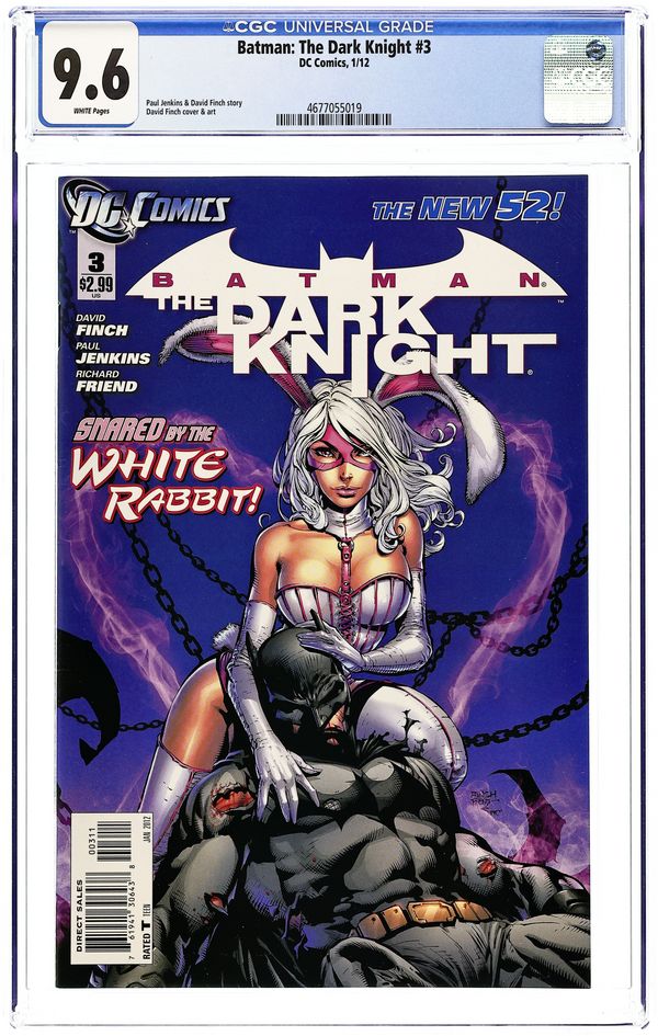 Tags: Batman$21.00Written by PAUL JENKINS Art by DAVID FINCH and RICHARD FRIEND with JAY FABOK Cover by DAVID FINCH and RICHARD FRIEND A wave of fear washes across Gotham City as a mysterious toxin radically alters the bodies of its criminals, sending crazed villains into the streets and stretching the resources of the police department. Can Batman and his vigilante partners follow the clues and uncover the perpetrator's real identity? And when one fabled hero is stricken by the poison, the trail will point to the mysterious White Rabbit. Cover price $2.99.
