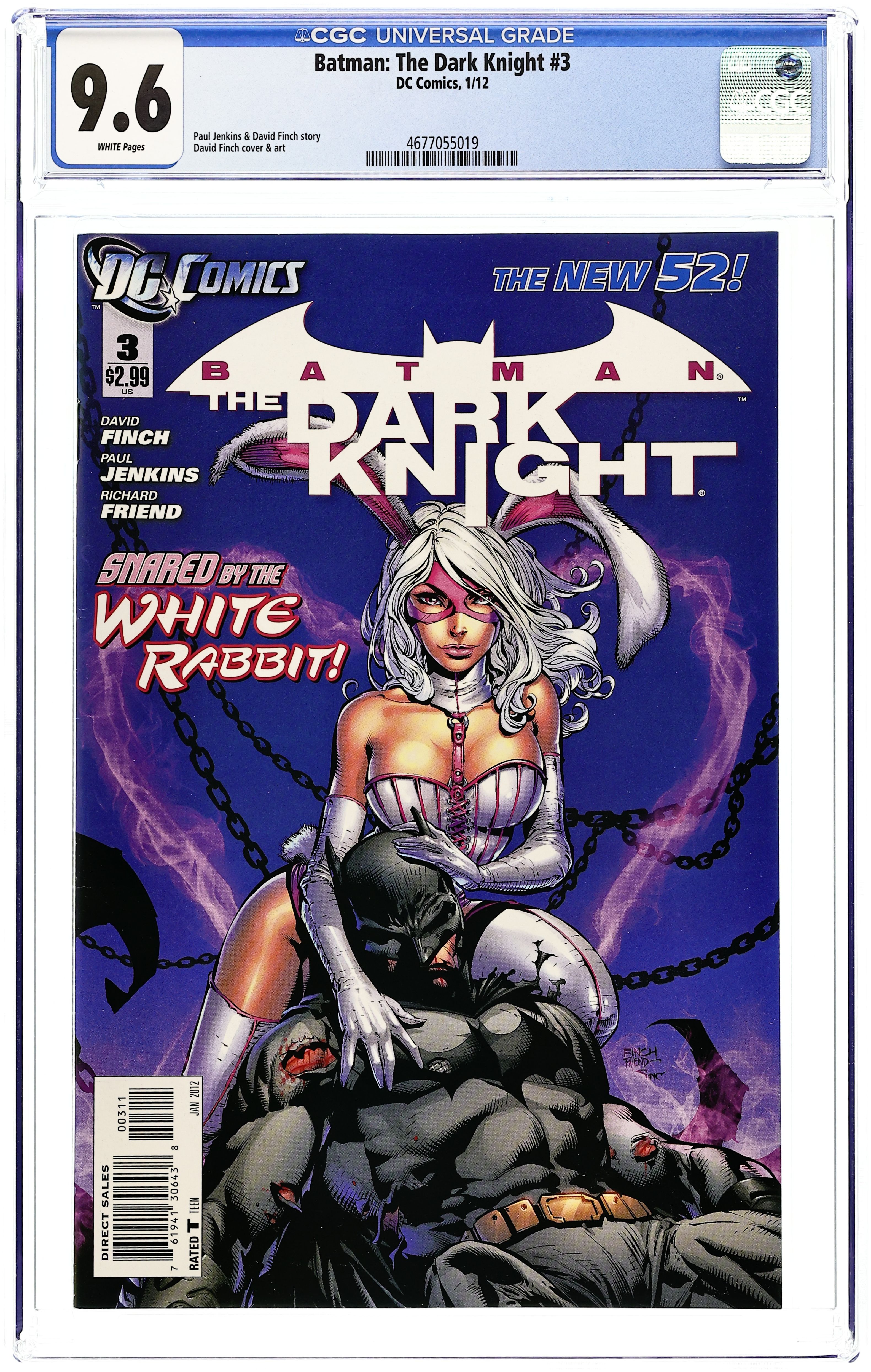 Tags: Batman$23.00Written by PAUL JENKINS Art by DAVID FINCH and RICHARD FRIEND with JAY FABOK Cover by DAVID FINCH and RICHARD FRIEND A wave of fear washes across Gotham City as a mysterious toxin radically alters the bodies of its criminals, sending crazed villains into the streets and stretching the resources of the police department. Can Batman and his vigilante partners follow the clues and uncover the perpetrator's real identity? And when one fabled hero is stricken by the poison, the trail will point to the mysterious White Rabbit. Cover price $2.99.