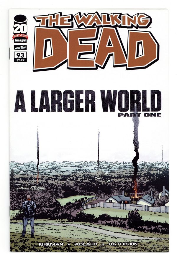 A Larger World: Part 1 of 4 - story ROBERT KIRKMAN art / cover CHARLIE ADLARD & CLIFF RATHBURN 'A LARGER WORLD' begins here! As we ramp up to the release of our monumental 100th issue, the world is changing. Rick and his band of survivors are faced with new threats - and new opportunities. Nothing will ever be the same - and with this book, you know we mean it! Cover price $2.99.