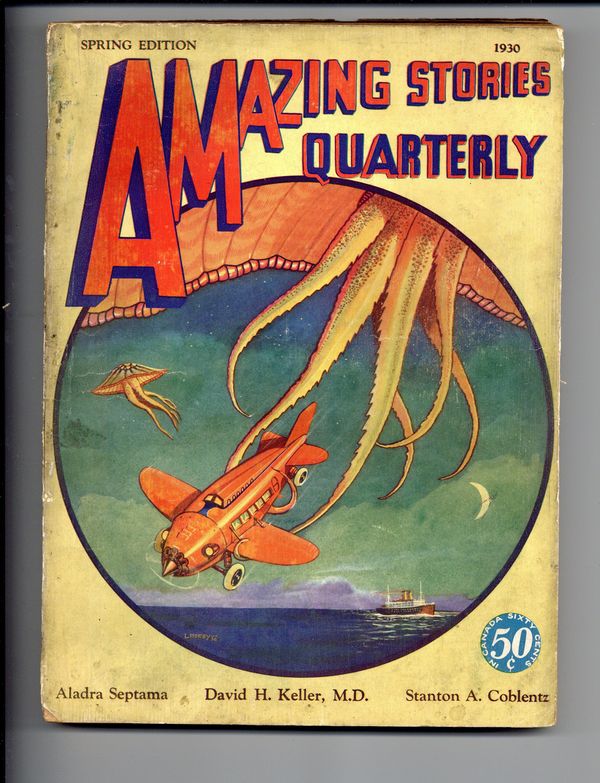 Volume 3, Issue 2 - Spring, 1930. Stories by Aladra Septama, David H. Keller, M.D., and Stanton A. Coblentz, and Dan Fabers. Illustrations by Leo Morey and Wesso. 8.5-in. x 11-in.; black and white with color cover; newsprint interiors. Cover price $0.50.