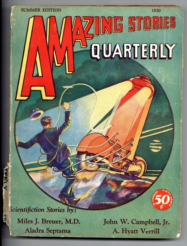 Vol. 3, No. 3 - Summer 1930. Stories by Miles J. Breuer, M.D., Aladra Septama, John W. Campbell Jr., and A. Hyatt Verrill. Illustrations by Wesso and Paul. Leo Morey cover. 8.5-in. x 11-in.; black and white with color cover; 144 newsprint pages. Cover price $0.50.