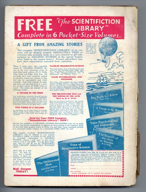 Published Jul 1930 by Experimenter Publications.$125.00- Front cover detached 30%. Back cover detached 40%. Water damage: Slight. Staple rust: Slight.