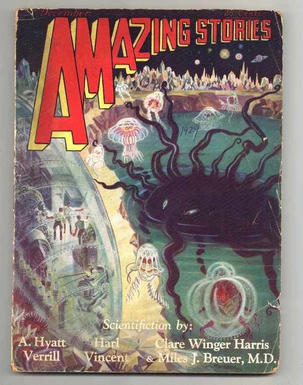 Volume 4, Issue 9 - December, 1929. Amazing Stories volume 4 number 9 published in December 1929. Edited by Hugo Gernsback. 8-in. x 11-in., 176 pages, black and white. Cover price $0.25.