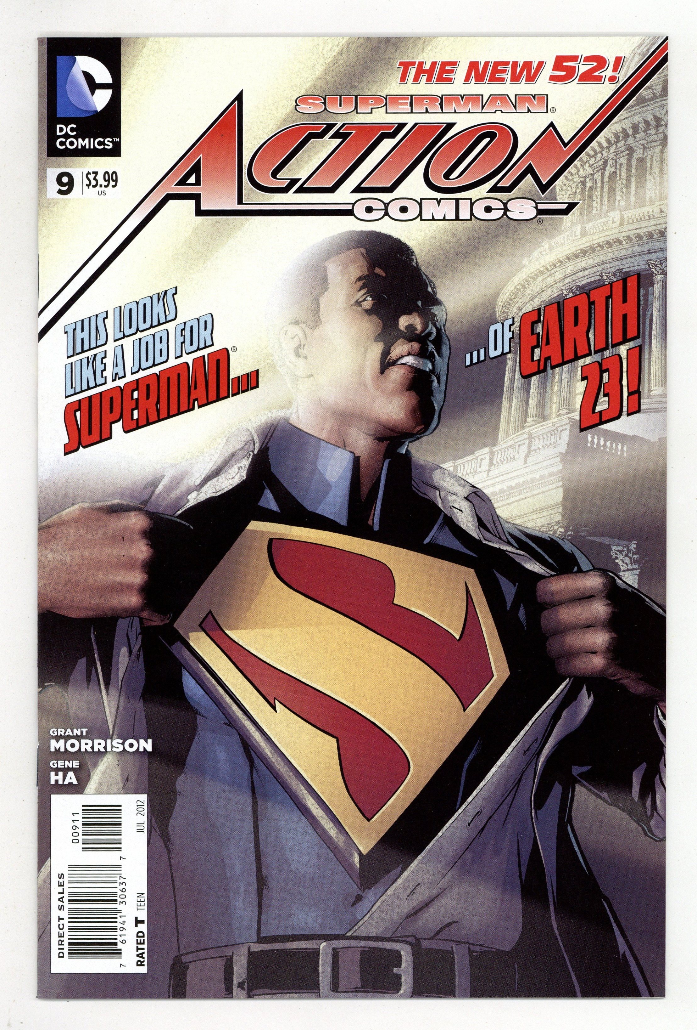 $15.00Cover by Gene Ha. Written by Grant Morrison. Art by Gene Ha. Featuring characters from parallel Earths, including PRESIDENT SUPERMAN! Introducing new villain SUPERDOOM! Guest artist GENE HA joins GRANT MORRISON for this tale of not one, not two, but THREE Earths! Cover price $3.99.