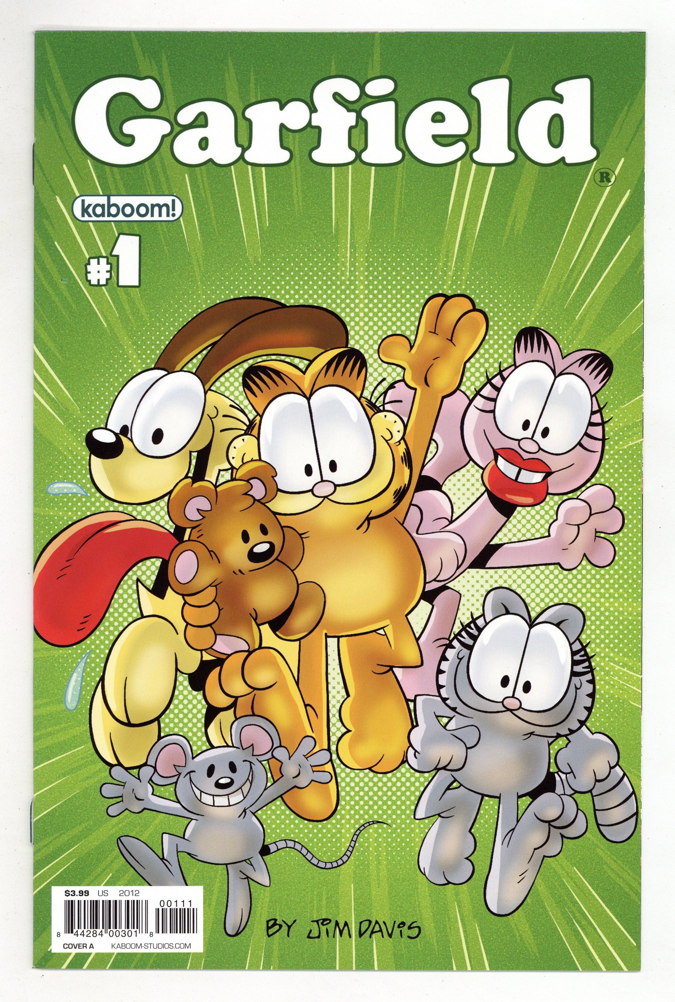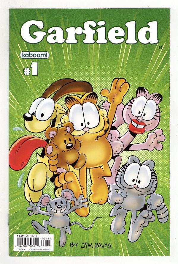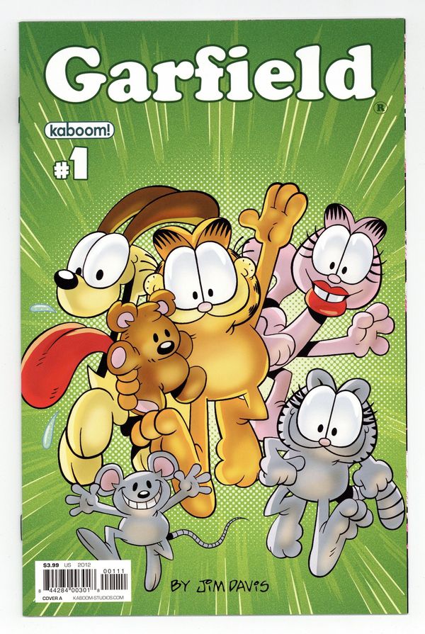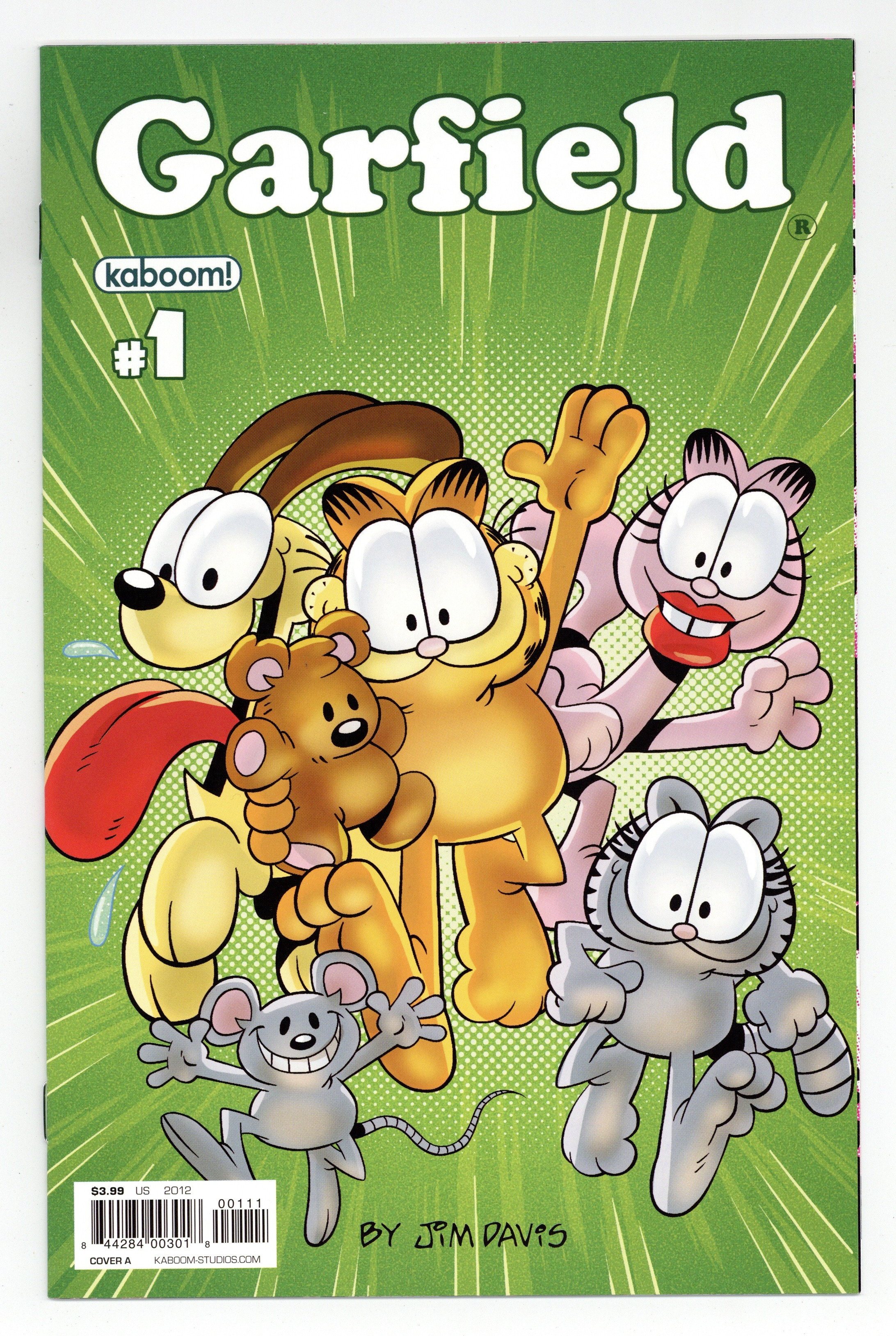 Published May 2012 by Boom Studios.$8.00(W) Mark Evanier (A/CA) Gary Barker This May, everyone's favorite lasagna-scarfing cat opens the fridge to an all-new ongoing comic book series! Join Garfield as he begins his monthly exploits with Jon, Odie, and the rest of the gang in the latest all-ages must-read from KaBOOM! The Garfield Show writer and comics luminary Mark Evanier teams up with beloved Garfield strip cartoonist Gary Barker to bring you all the laughs (and lasagna) you can handle. With brand new stories featuring everyone's favorite feline, this debut #1 issue is sure to please Garfield fans, both new and old alike! Ask your retailer about the rare 'Superhero' variant and the extremely rare 'Garfield's First Appearance' variant. Cover price $3.99.