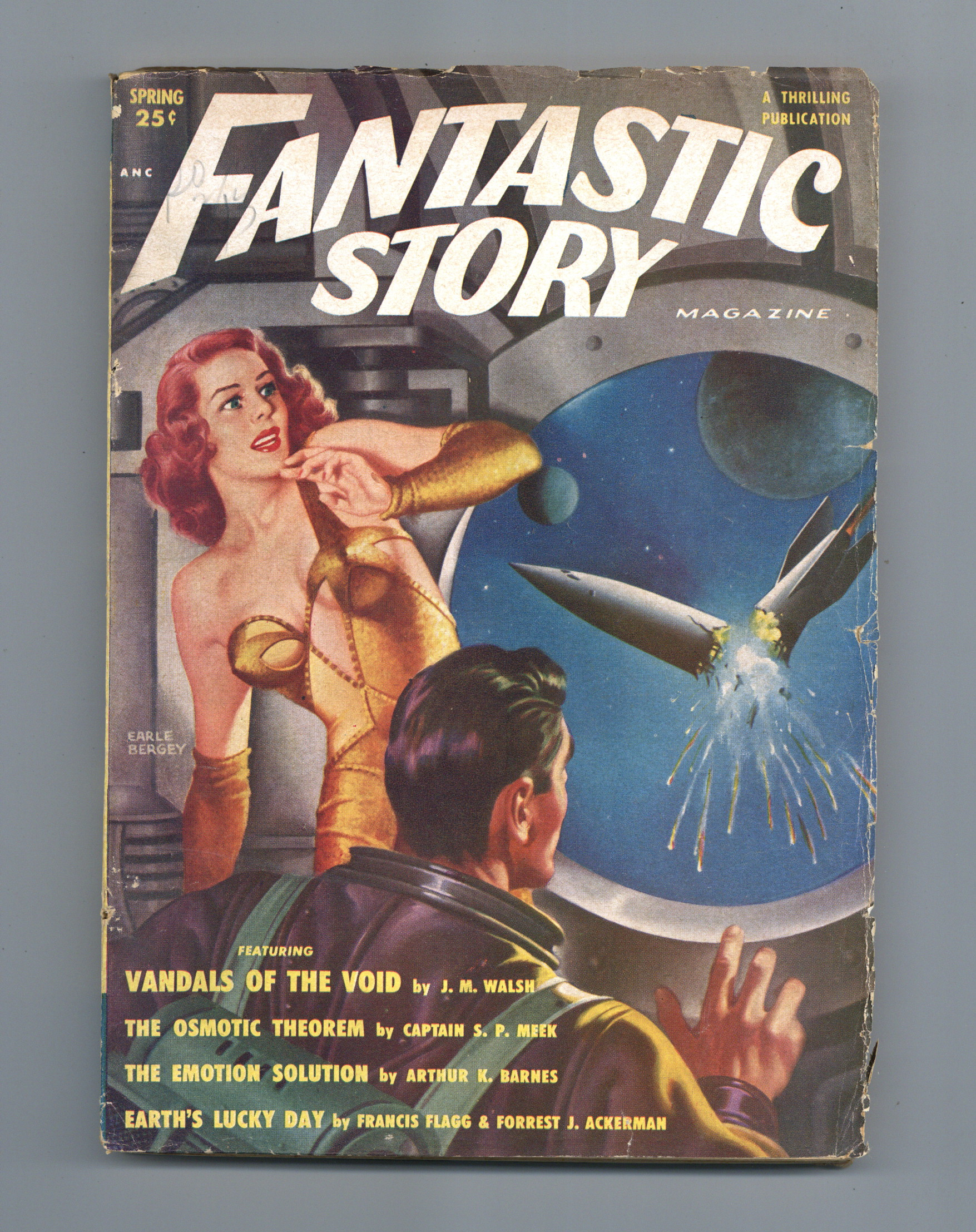 Volume 2, Issue 2 - Spring, 1951. Earle K. Bergey cover. Stories by J.W. Walsh, Francis Flagg and Forrest J. Ackerman, Captain S.P. Meek, Arthur K. Barnes, Carter Sprague, and Damon Knight. 7-in. x 9.75-in.; black and white; 150 pages. Cover price $0.25.