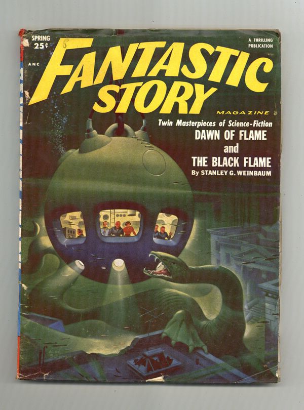 Volume 3, Issue 3 - Spring, 1952. Alex Schomburg Cover. Two stories by Stanley G. Weinbaum ("Dawn of Flame" and "The Black Flame"), plus stories by J.W. Groves, Sam Merwin Jr., Laurence Manning. 7-in. x 9.75-in.; black and white; 148 pages. Cover price $0.25.