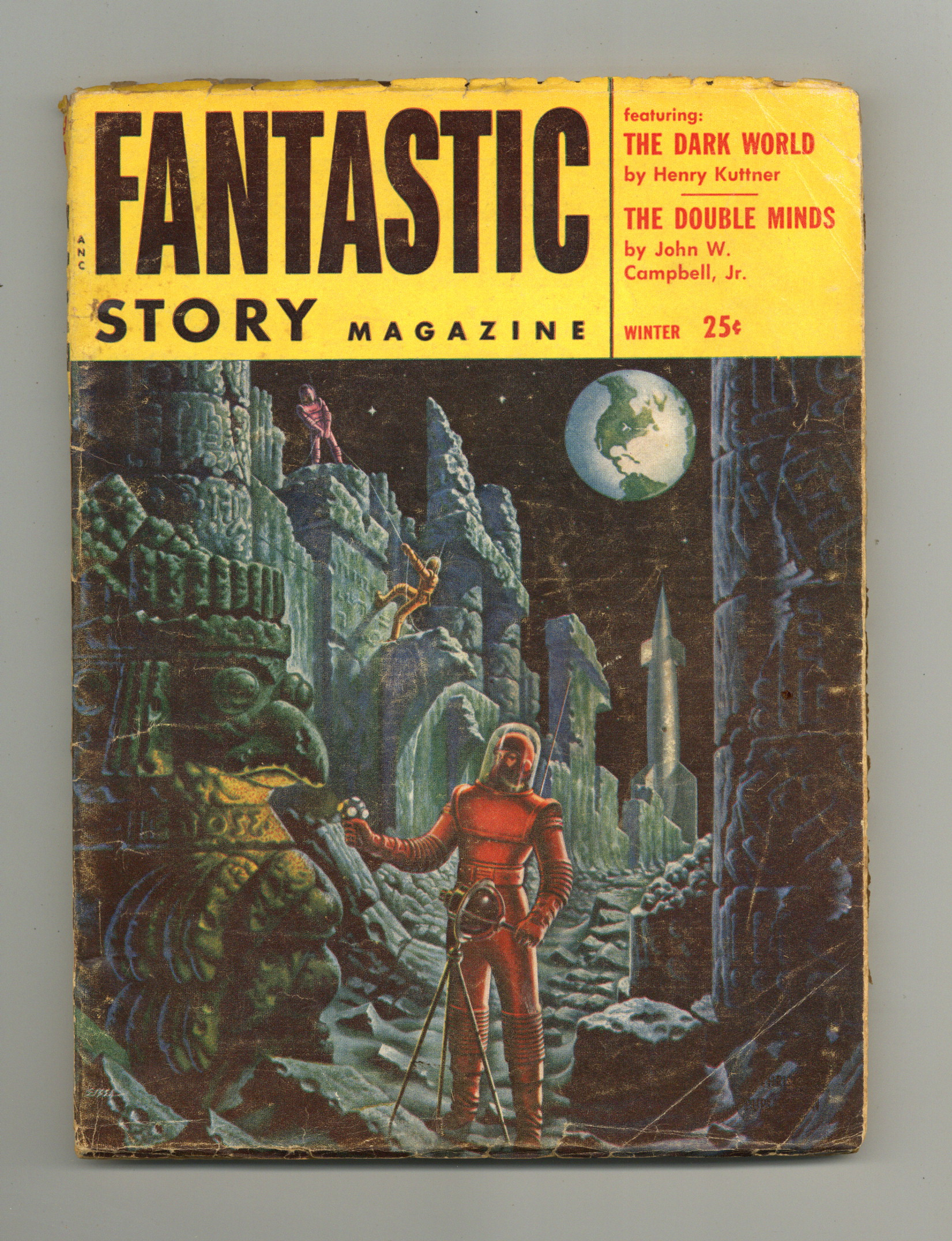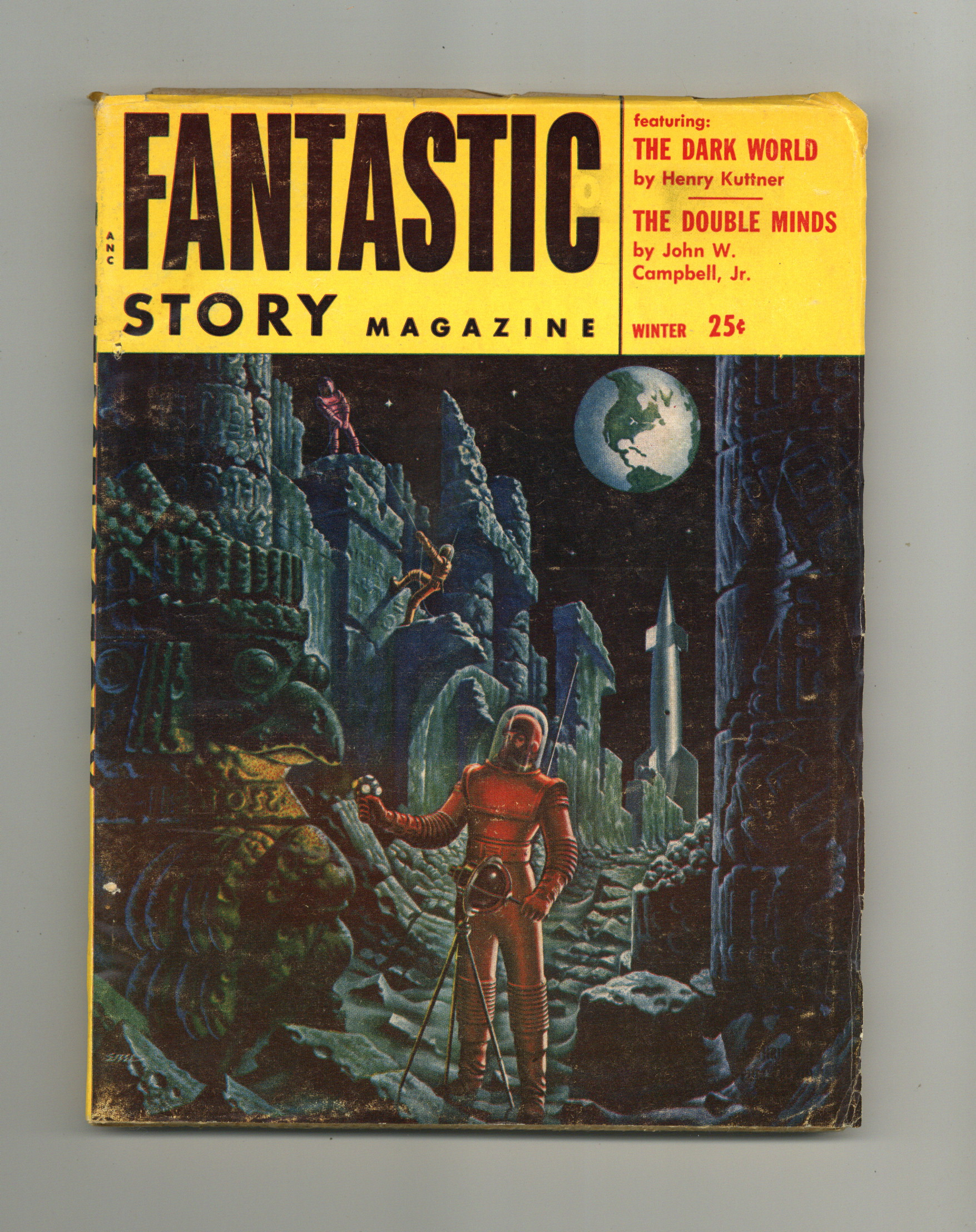Winter 1954. Alex Ebel cover. Stories: "The Dark World" by Henry Kuttner, "The Doulbe Minds" by John W. Campbell, "Welcome, Stranger" by Monroe Schere, "The Rebels" by Gordon R. Dickson, "Mousehole" by Stuart Harbour, "Split Personality" by William Morrison. Softcover Pulp, 7-in x 10-in, 134 Pages, B&W. Cover price $0.25.