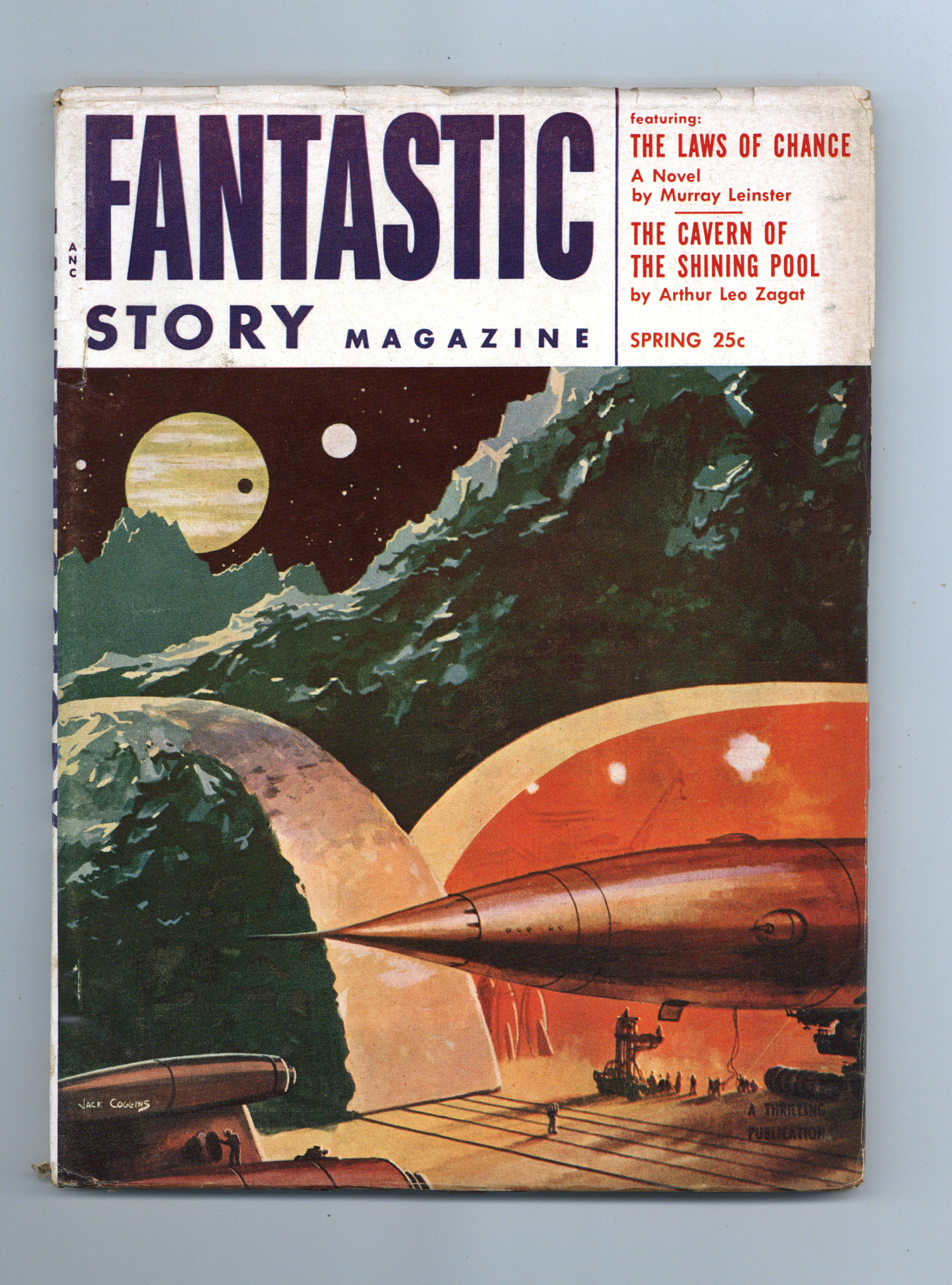 Spring 1954. Cover by Jack Coggins. Stories by Murray Leinster, Arthur Leo Zagat, Tom Wilson, Walter H. Mulstay, R.J. McGregor, Alfred Coppel, and William L. Bade. Virgil Finlay (2) and Alex Schomburg illustrations. 7-in. x 9.75-in.; black and white; 134 pages. Cover price $0.25.