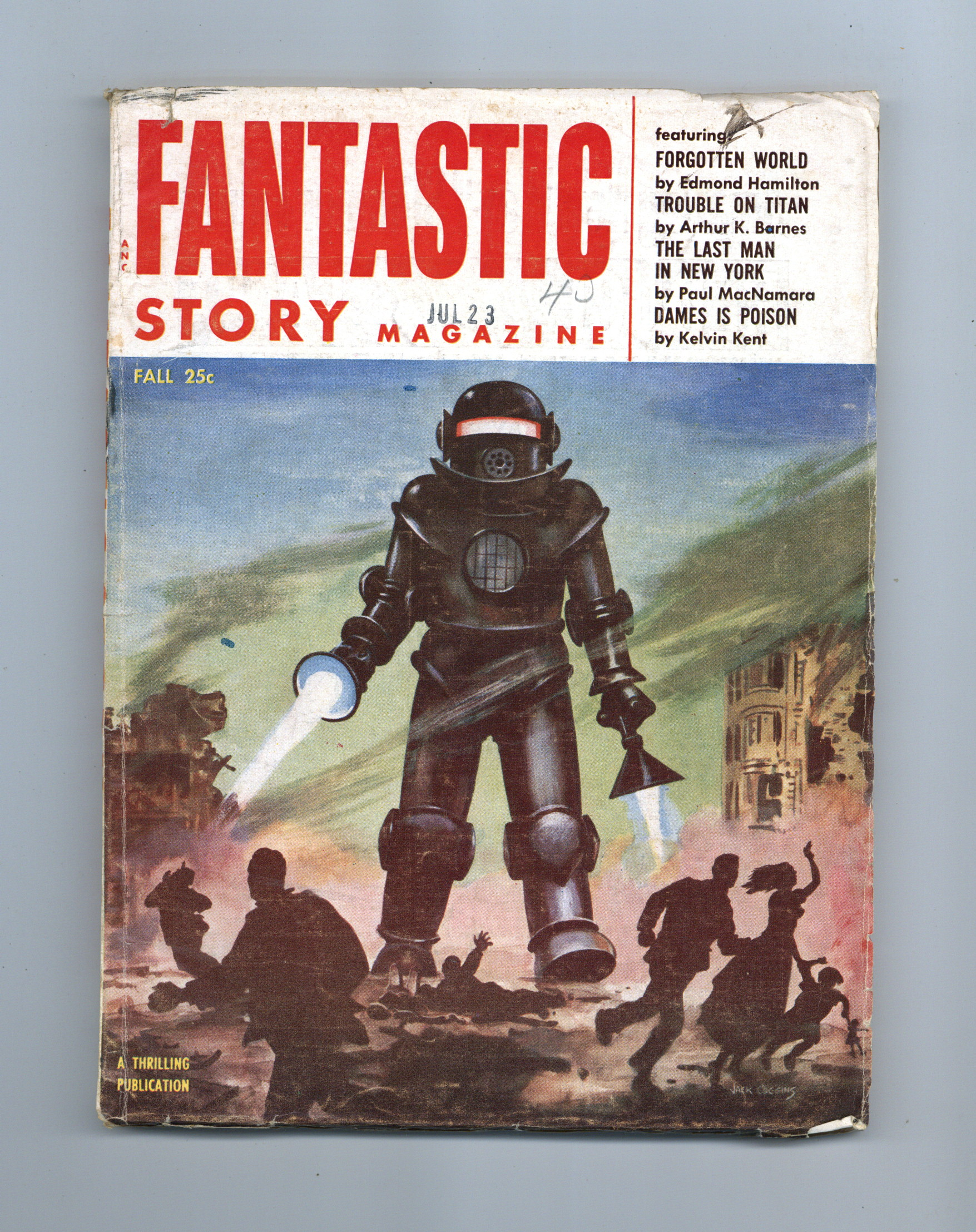Fall 1954. Cover by Jack Coggins. Stories by Edmond Hamilton, Arthur K. Barnes, Paul MacNamara, Kelvin Kent, and Dave Dryfoos. Three Virgil Finlay illustrations. This issue appeared in the "Back to the Future" (part 1) movie. 7-in. x 9.75-in.; black and white; 134 pages. Cover price $0.25.