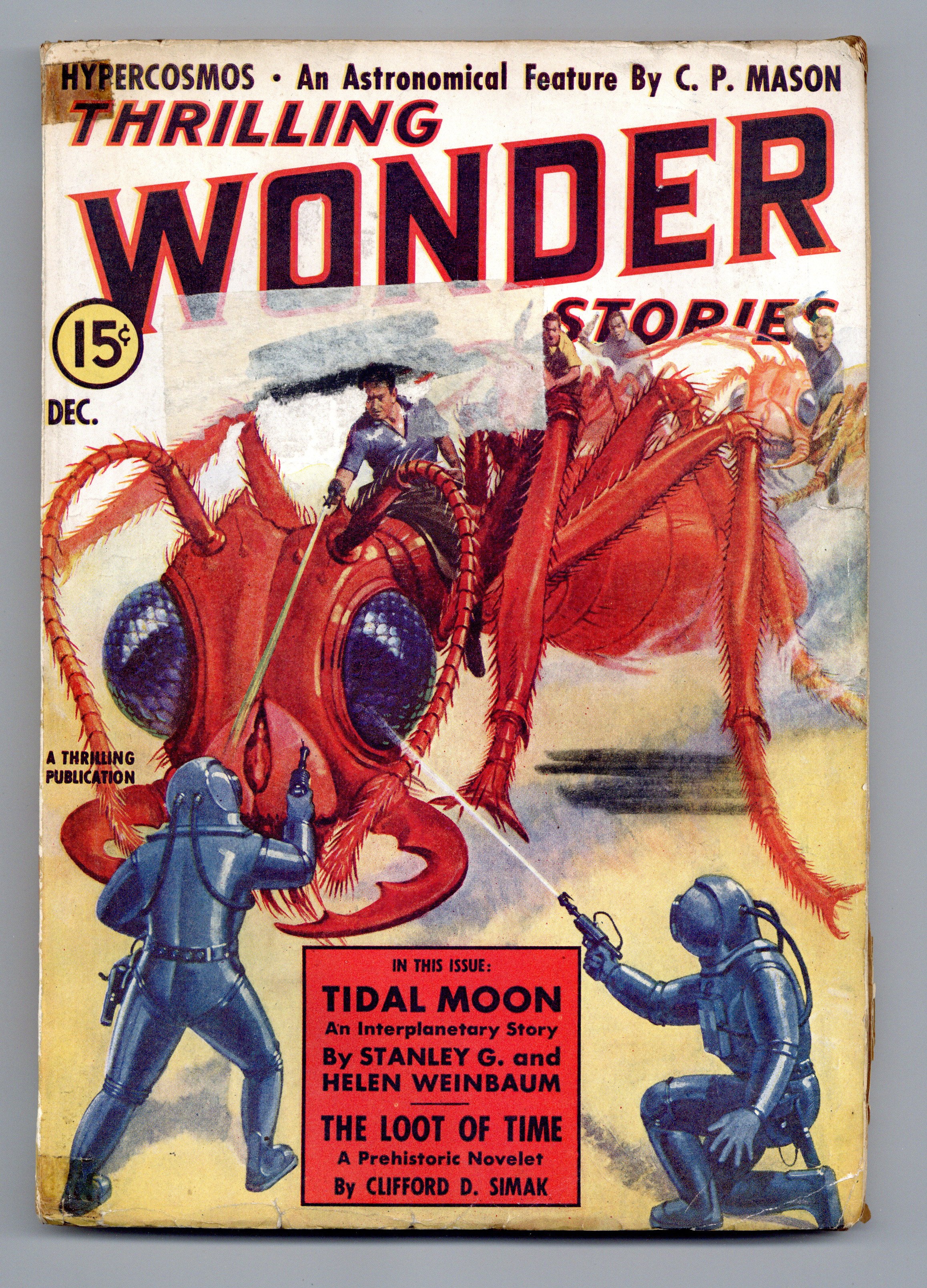 Dec 1938. Stories by Stanley G. and Helen Weinbaum, Clifford D. Simak, Henry Kuttner, Eando Binder, Will Garth, Ray Cummings, and Edmond Hamilton. Alex Schomburg illustration. 7-in. x 10-in.; black and white; 128 newsprint pages. Cover price $0.15.