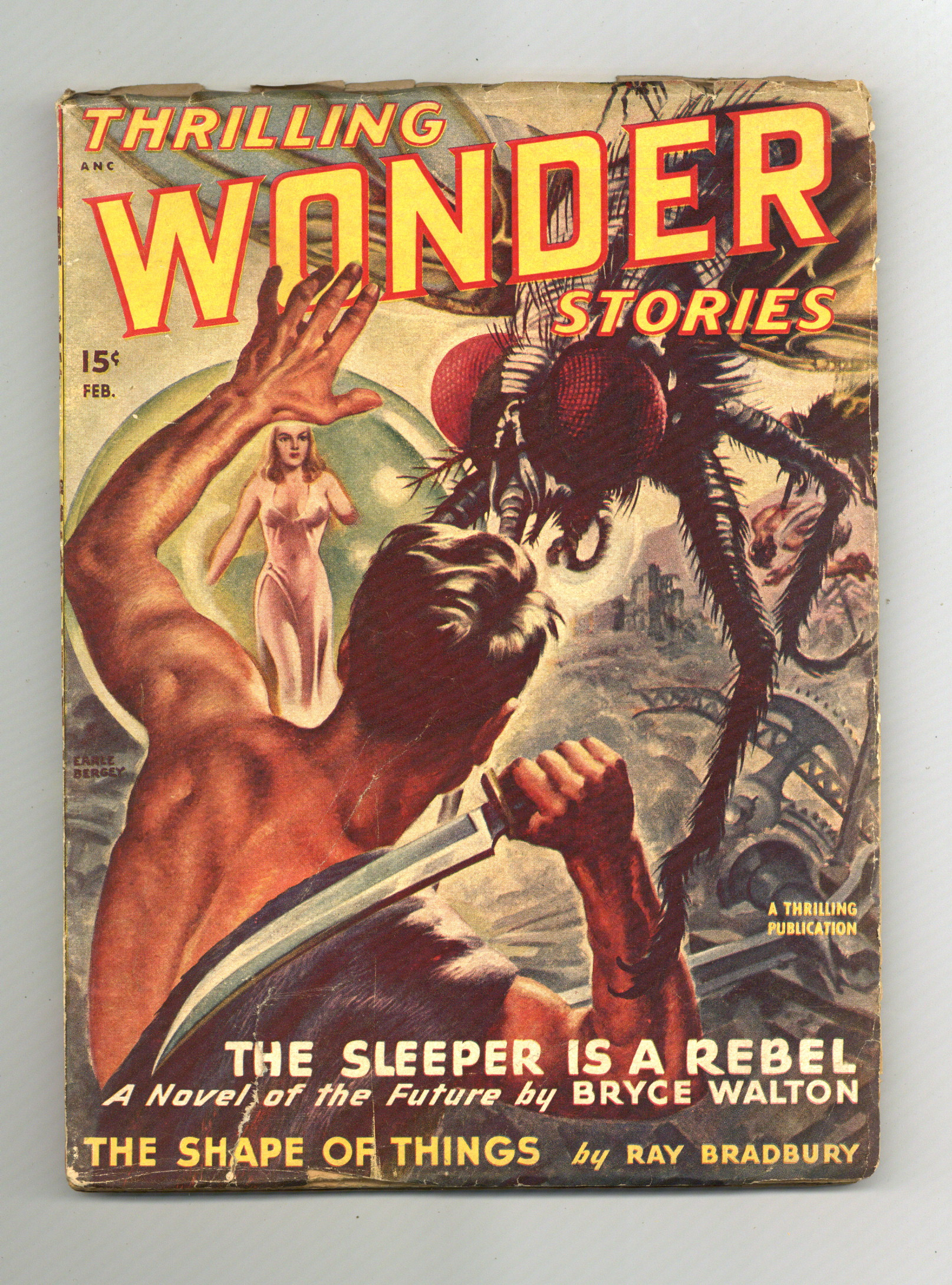 Volume 31, Issue 3 - February, 1948. Cover by Earle K. Bergey. Stories by Bryce Walton, Ray Bradbury, William Fitzgerald, Edmond Hamilton, Margaret St. Clair, and John Barrett. Two Virgil Finlay illustrations. 7-in. x 10-in.; black and white; 112 newsprint pages. Cover price $0.15.
