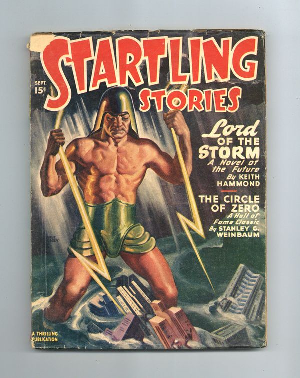 Volume 16, Issue 1 - September, 1947. Cover by Earle K. Bergey. Stories by Keith Hammond, Stanley G. Weinbaum, Carl Jacobi, and Ray Cummings. Five Virgil Finlay illustrations. 6.75-in. x 9.75-in.; black and white; 118 pages. Cover price $0.15.