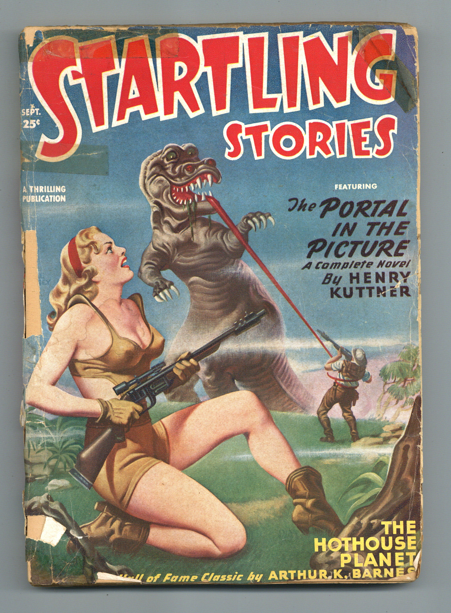 Volume 20, Issue 1 - September, 1949. Cover by Earle K. Bergey. Stories: "The Portal in the Picture" by Henry Kuttner, "The Hothouse Planet" by Arthur K. Barnes, "Communications" by Edwin James, "A Condition of Beauty" by John D. MacDonald, "The Fires Within" by Arthur C. Clarke, "Beyond The Black Nebula" by Rene LaFayette. Four Virgil Finlay illustrations. 7-in x 9-in, 164 Pages, B&W. Cover price $0.25.