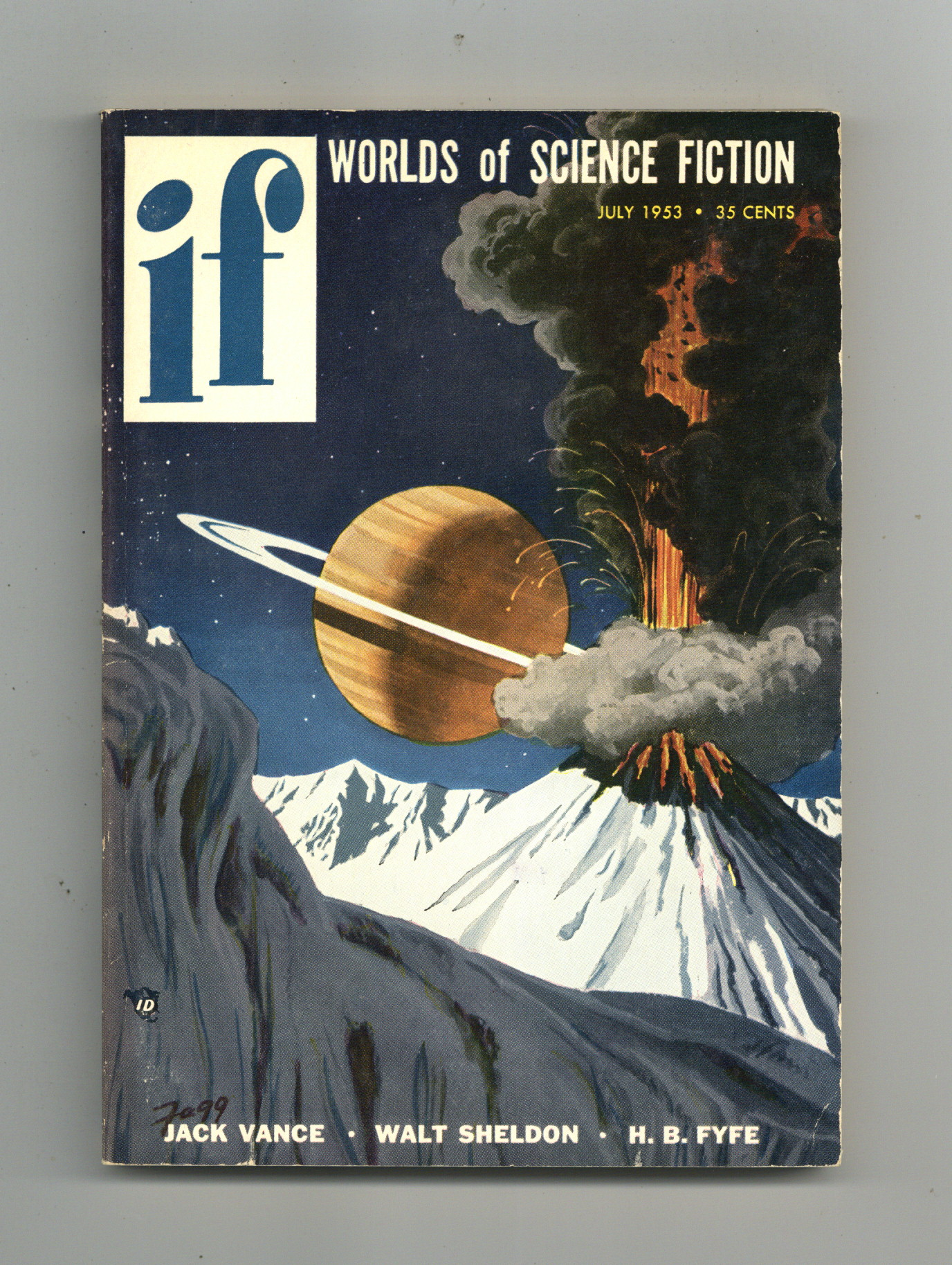Published Jul 1953 by Quinn Publishing Co..$12.50July 1953. Science fiction stories by Jack Vance, Walt sheldon, H.B. Fyfe, Richard O. Lewis, James McKimmey Jr., Tom Leahy, Russell Burton, Edward W. Ludwig, Mark Clifton and Alex Apostolides, and Evan Hunter (as "S.A. Lombino"). Virgil Finlay and Kelly Freas illustrations. Wrap-around cover by Ken Fagg. 5.25-in. x 7.5-in.; black and white; 120 newsprint pages. Cover price $0.35.