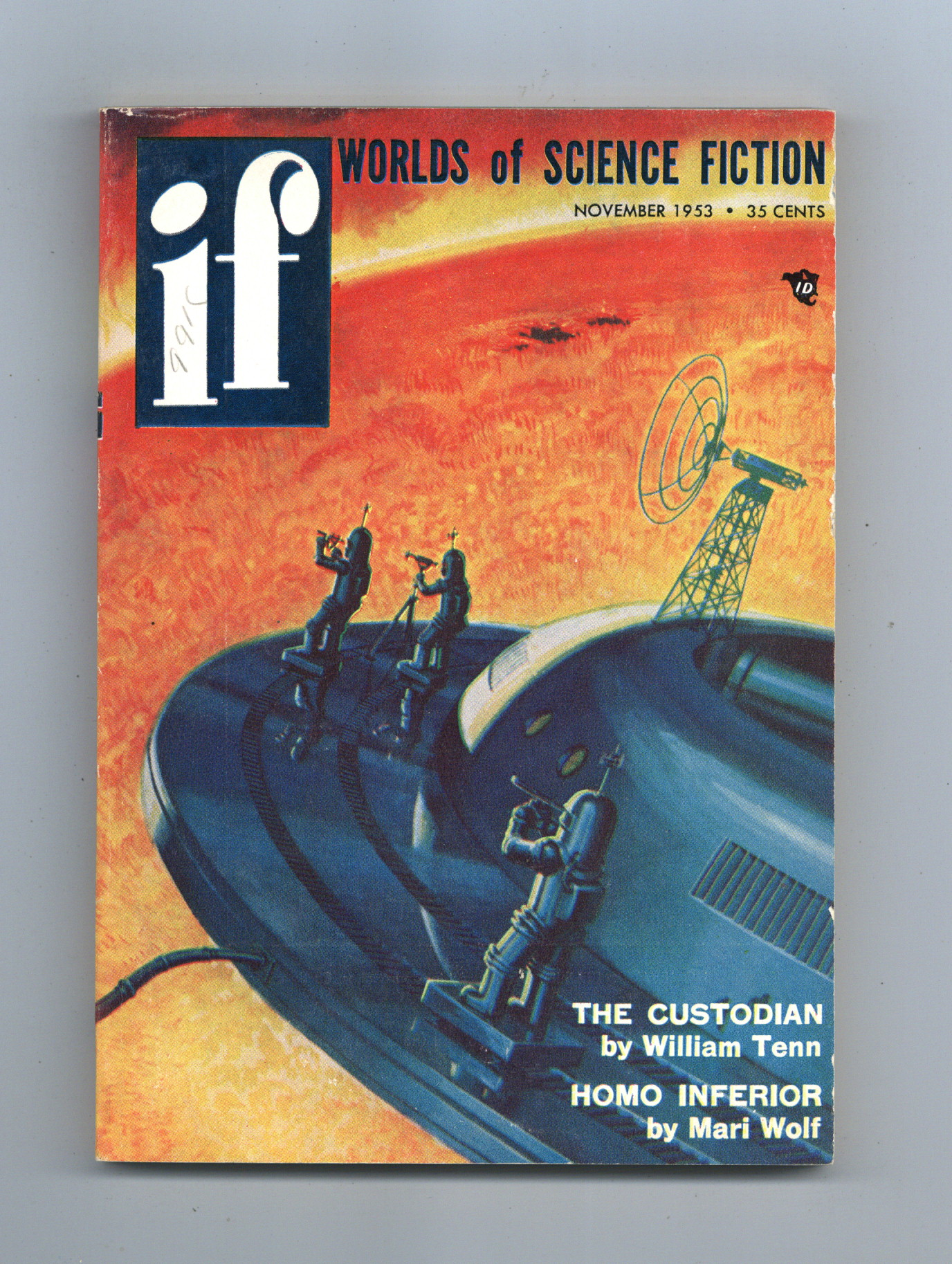 Nov 1953. Science fiction stories by Mari Wolf, William Tenn, Dean McLaughlin, Jerome Bixby, Arthur Dekker Savage, James McKimmey Jr., Helen Huber, Boyd Ellanby, and Alfred Coppel. Four Kelly Freas illustrations. Wrap-around cover by Ken Fagg. 5.25-in. x 7.5-in.; black and white; 120 newsprint pages. Cover price $0.35.