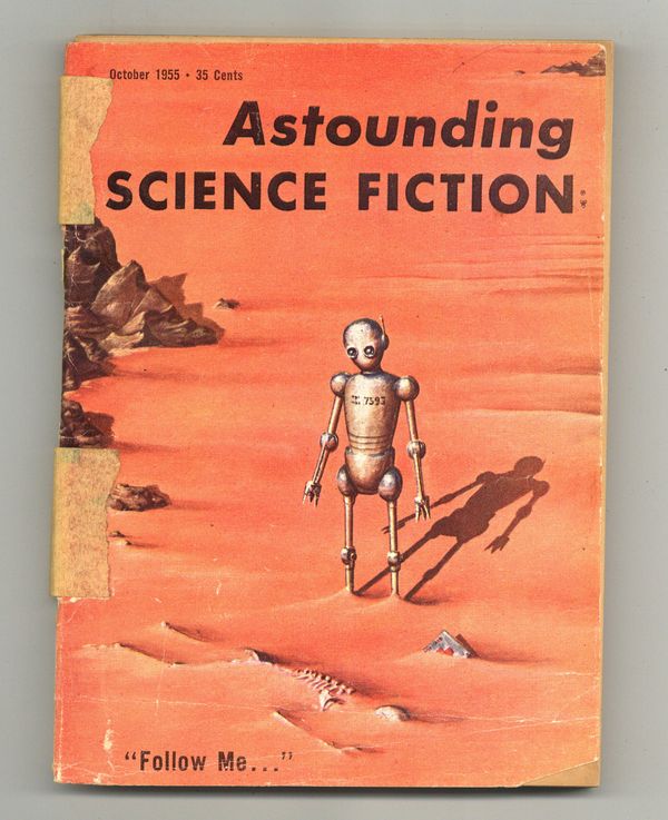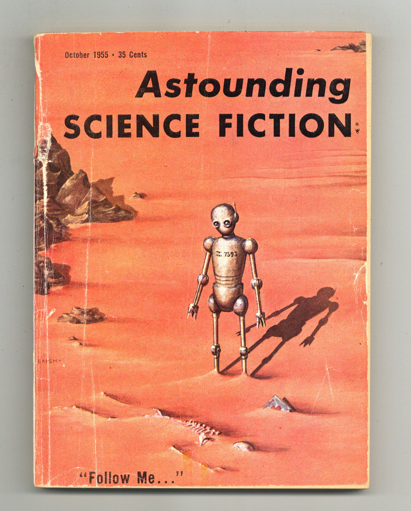 Published Oct 1955 by Street & Smith.$12.50Oct 1955. Volume 56, Issue 2 - 1st printing. Science fiction stories by Eric Frank Russell ("Call Him Dead" conclusion), Francis Donovan, James E. Gunn, and Ernest M. Kenyon. Illustrations by Freas and Rogers. Article on highway hypnosis. Cover by Ed Emshwiller. Softcover, 5.5-in. x 7.75-in.; 160 newsprint pages, B&W. Cover price $0.35.