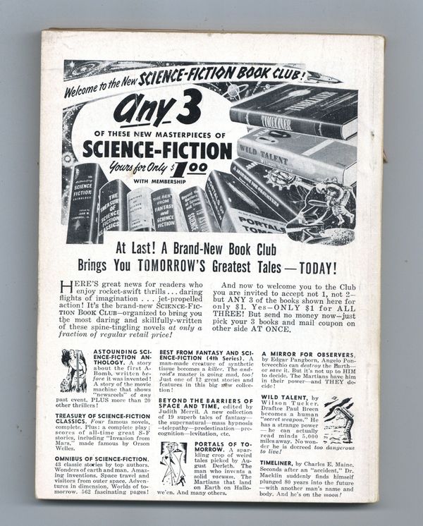 Published Oct 1955 by Street & Smith.$6.00- Front cover detached 5%. Staple rust: Slight.