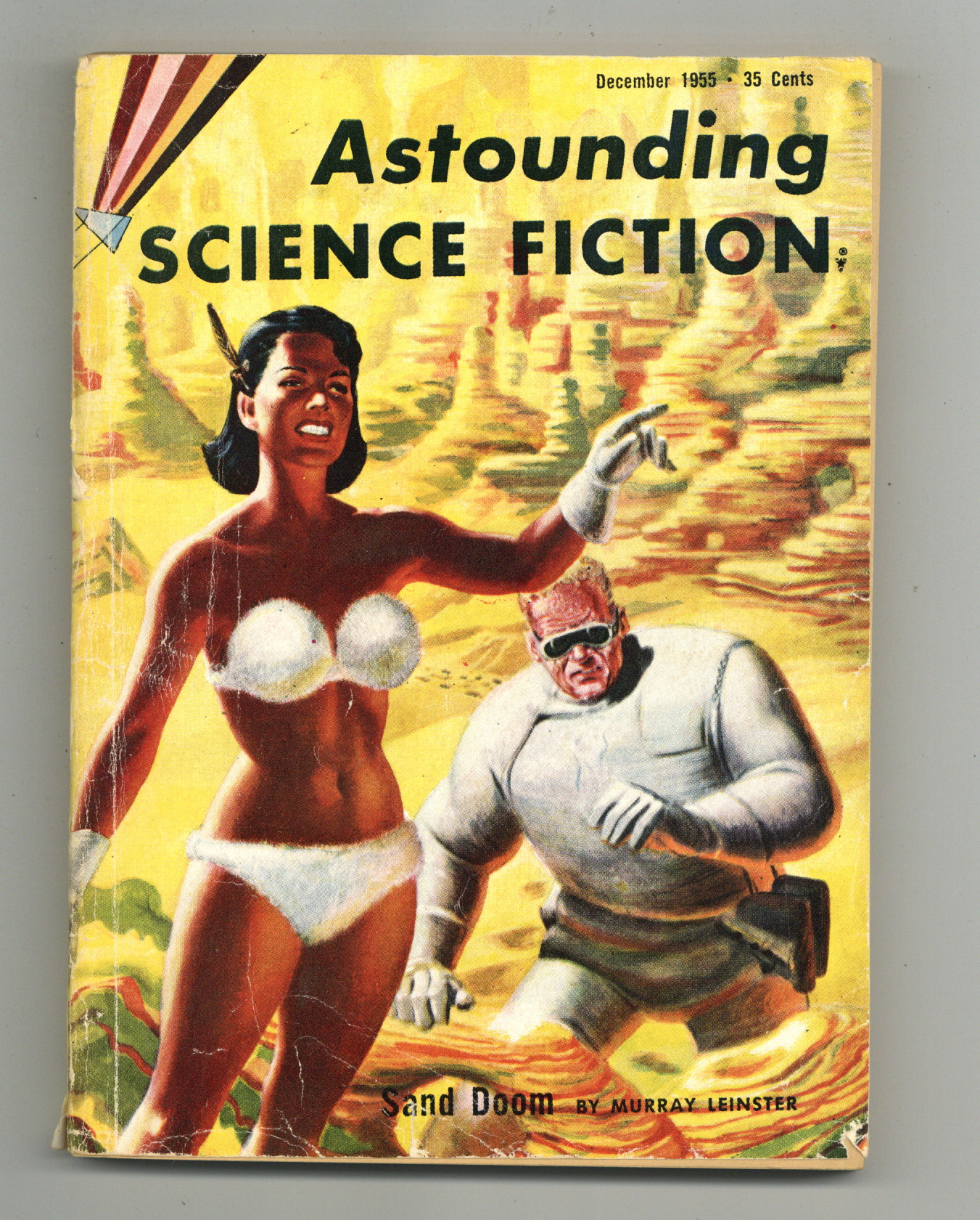 Published Dec 1955 by Street & Smith.$12.50Dec 1955. Volume 56, Issue 4 - 1st printing. Science fiction stories by Frank Herbert ("Under Pressure" part 2), Murray Leinster, Nathaniel Gordon, Stanley Gimble, J.A. Taylor, and Lou Tabakow. Illustrations by Freas, Emsh, and van Dongen. Cover by Frank Kelly Freas. Softcover, 5.5-in. x 7.75-in.; 160 newsprint pages, B&W. Cover price $0.35.