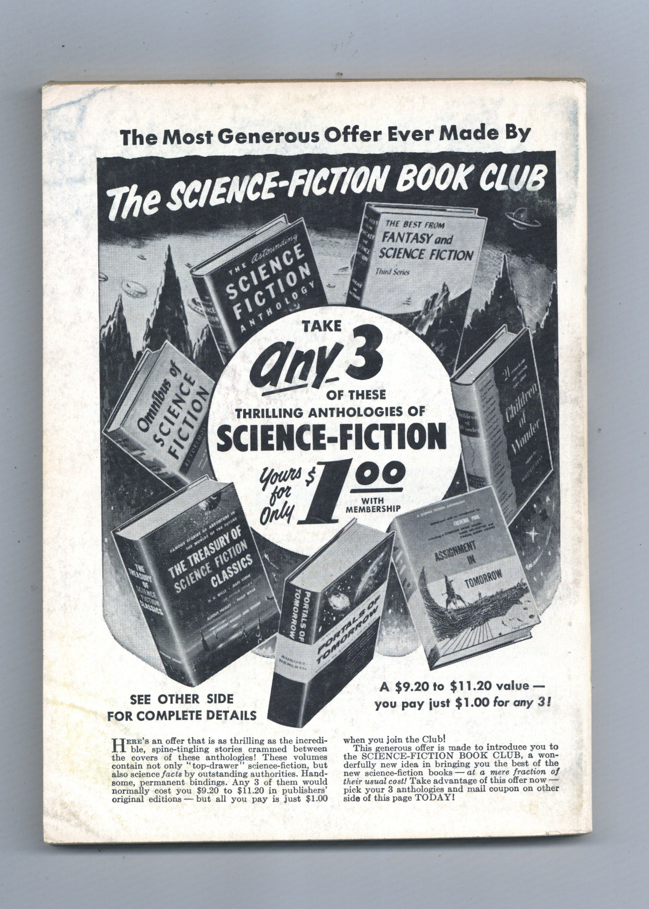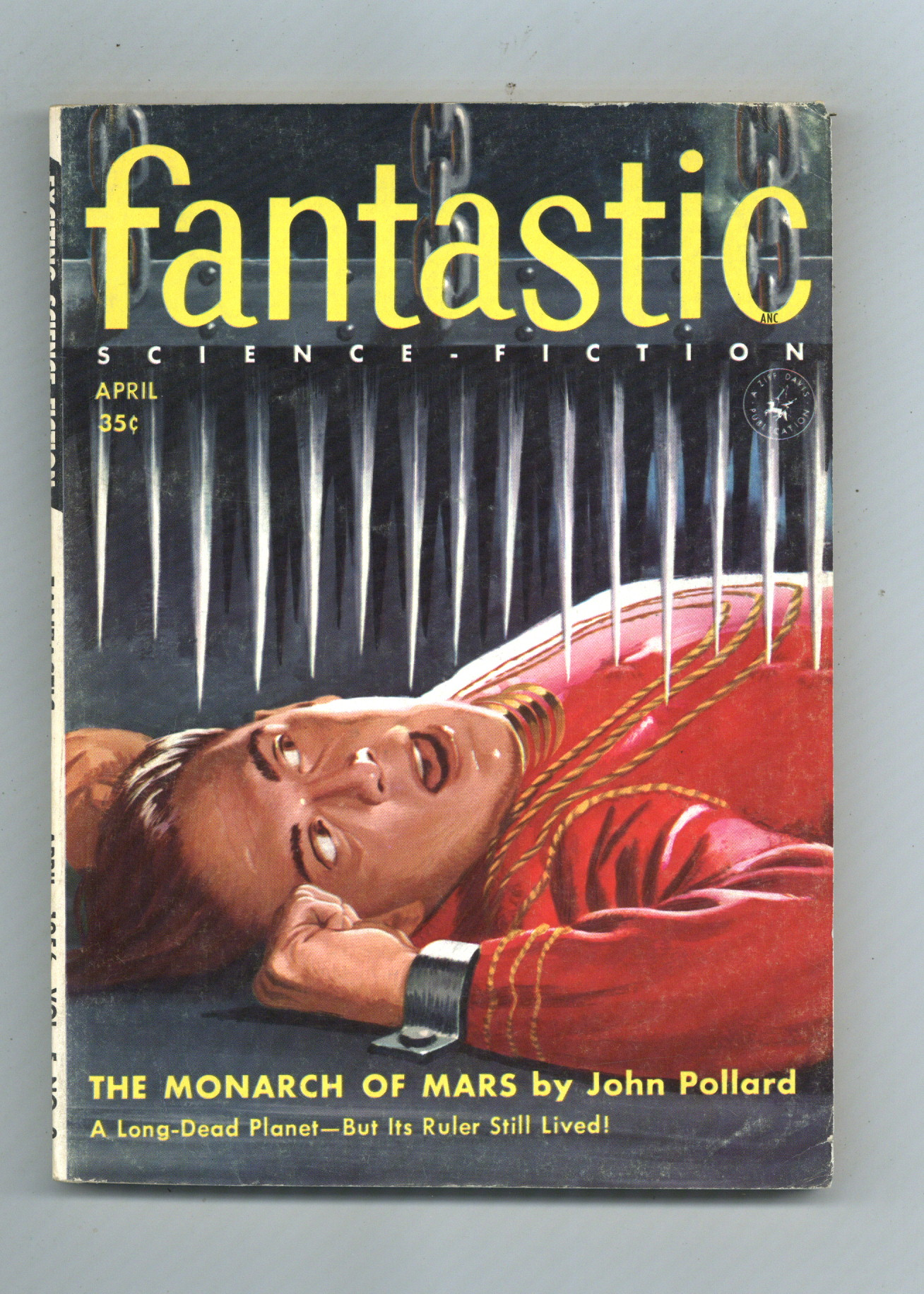 Published Apr 1956 by Ziff Davis.$4.00April 1956. Science fiction and fantasy stories byJohn Pollard, E.K. Jarvis, Karl Stanley, and Milton Lesser. Carmine Infantino illustration. Cover by Edward Valigursky. 5.5-in. x 7.75-in.; black and white; 128 newsprint pages. Cover price $0.35.