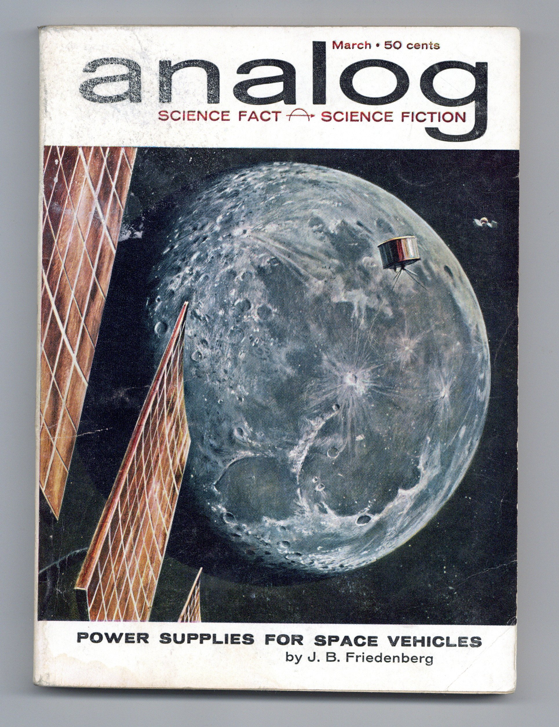 March 1962. Stories: "Epilogue" by Poul Anderson, "His Master's Voice" by Randall Garrett, "Uncalculated Risk" by Christopher Anvil, "Rough Beast" by Roger Dee, and "The Iron Jackass" by John Brunner. Science Fact feature, "Power Supplies for Space Vehicles" (conclusion) by J.B. Friedenberg. Cover by Schoenherr. Illustrations by Krenkel, Barberis, Morey, and Schoenherr. Softcover, 5.5-in. x 7.5-in.; 178 newsprint pages, B&W. Cover price $0.50.