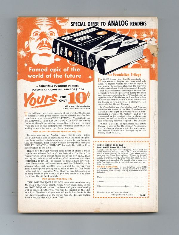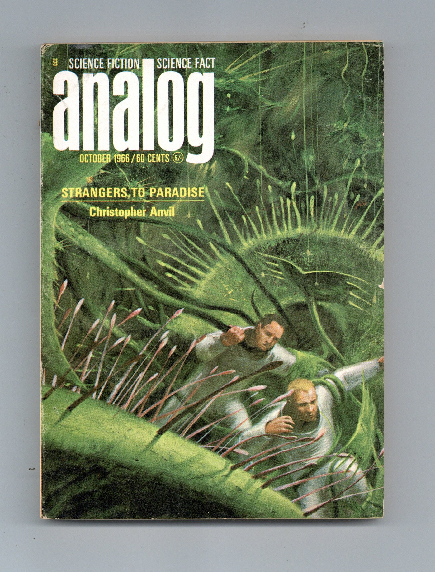 October 1966. Stories: "Too Many Magicians" (part 3) by Randall Garrett, "The Sons of Prometheus" by Alexei Panshin, Romp" by Mack Reynolds, and "Strangers to Paradise" by Christopher Anvil. Science Fact feature, "Challenge: the Insurgent vs. the Counterinsurgent" (part 2) by Joe Poyer. Cover by John Schoenherr. Illustrations by Leo Summers, Kelly Freas and John Schoenherr. Softcover, 5.5-in. x 7.5-in.; 178 newsprint pages, B&W. Cover price $0.60.