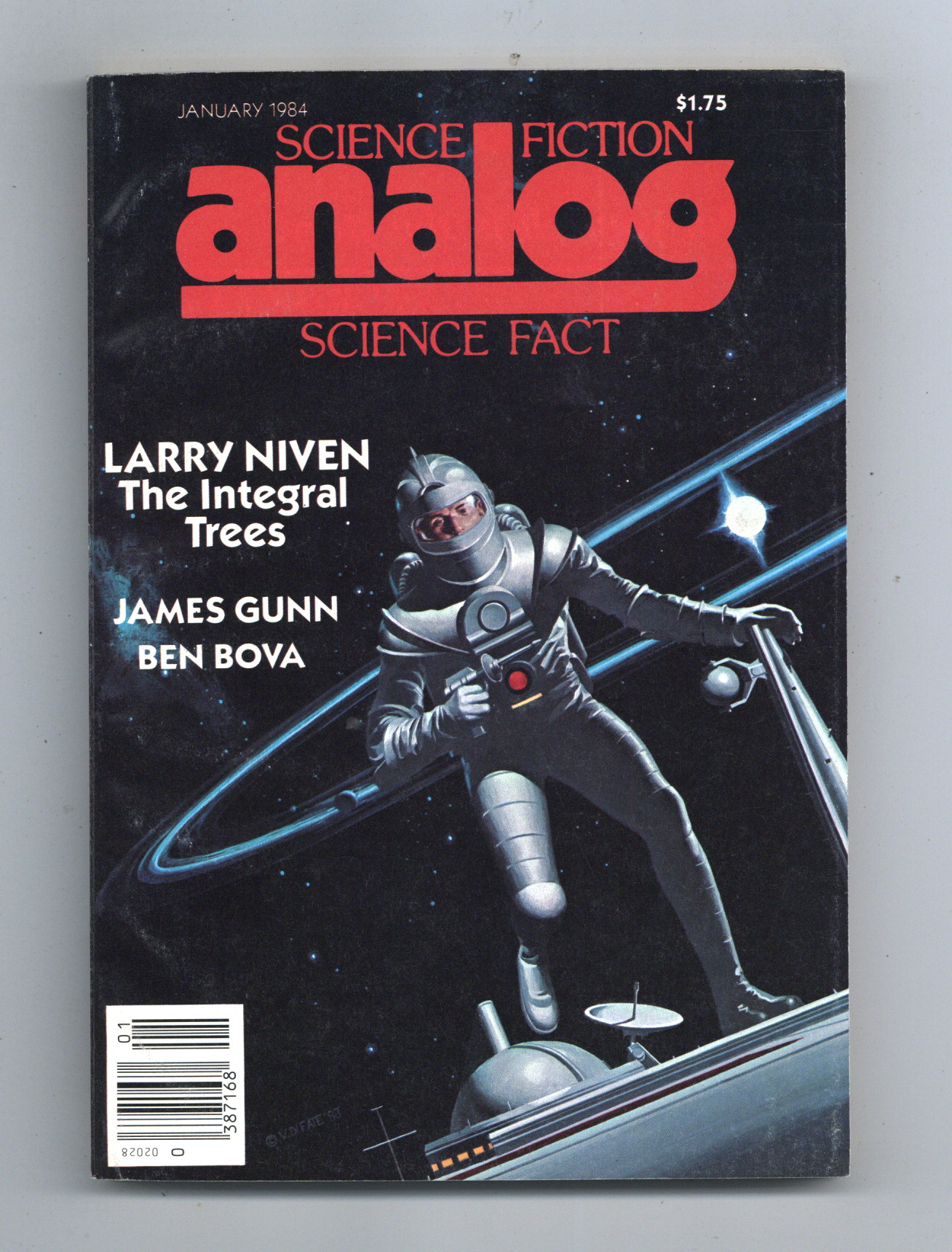 Published Jan 1984 by Dell Magazines.$4.00January 1984. Cover by Vincent Di Fate. Stories: "The Integral Trees" (conclusion) by Larry Niven, "End of the World" by James Gunn, "Frame of Reference" by Jerry Oltion, "The Crystal Spheres" by David Brin, "Final Draft" by Laurence M. Janifer, and "Second-Hand Smoke" by Bruce E. Ceasar. Science Fact article: "Aliens Among Us" by Dr. Mark S. Lesney. Illustrations by Vincent Di Fate, Janet Aulisio, Richard Crist, and Jack Gaughan. Softcover, 5.5-in. x 7.5-in.; 178 newsprint pages, B&W. Cover price $1.75.