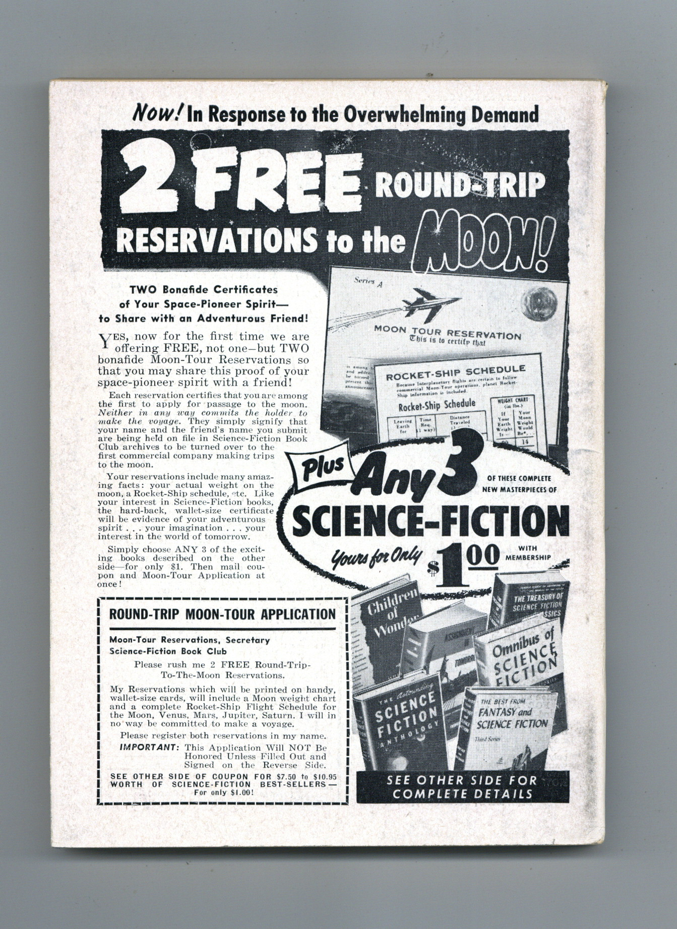 July 1956 - Volume 57, Issue 5 - 1st printing. Science fiction stories: "Critical Difference" by Murray Leinster, "Machine Complax" by Randall Garrett, "A Little Thing for the House" by F.L. Wallace, "Wild Modesty" by Allen Lang and "Tomb Tapper" by James Blish. Illustrations by Emsh, Freas, and Van Dongen. Article on Jupiter. Short reviews of J.R.R. Tolkien's "The Return of the King" and William Golding's "Lord of the Flies." Cover by Van Dongen. Softcover, 5.5-in. x 7.75-in.; 162 newsprint pages, B&W. Cover price $0.35.