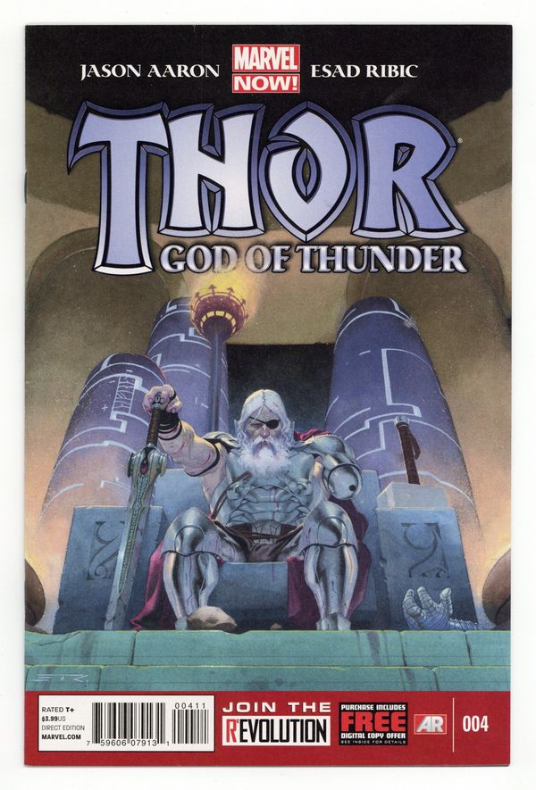 $12.75Cover by Esad Ribic (W) Jason Aaron (A) Esad Ribic Thousands of years in the future the last god king of a ruined Asgard makes his final stand against the berserker legions of the God Butcher. But even a king can fall. Even King Thor. Cover price $3.99.
