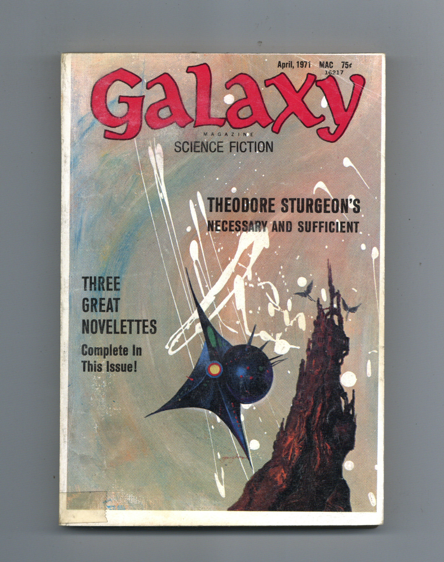 Published Apr 1971 by Galaxy Publications.$12.00April 1971. Cover by Jack Gaughan. Science fiction stories by Joe W. Halderman, Duncan Lunan, Gordon Eklund, Robert Silverberg's "A Time of Changes" Part 2, Theodore Sturgeon, Ernest Taves, and J. R. Pierce. 5-1/4-in. x 7-1/4-in.; b&w text with spot illustrations; 192 newsprint pages. Cover price $0.75.