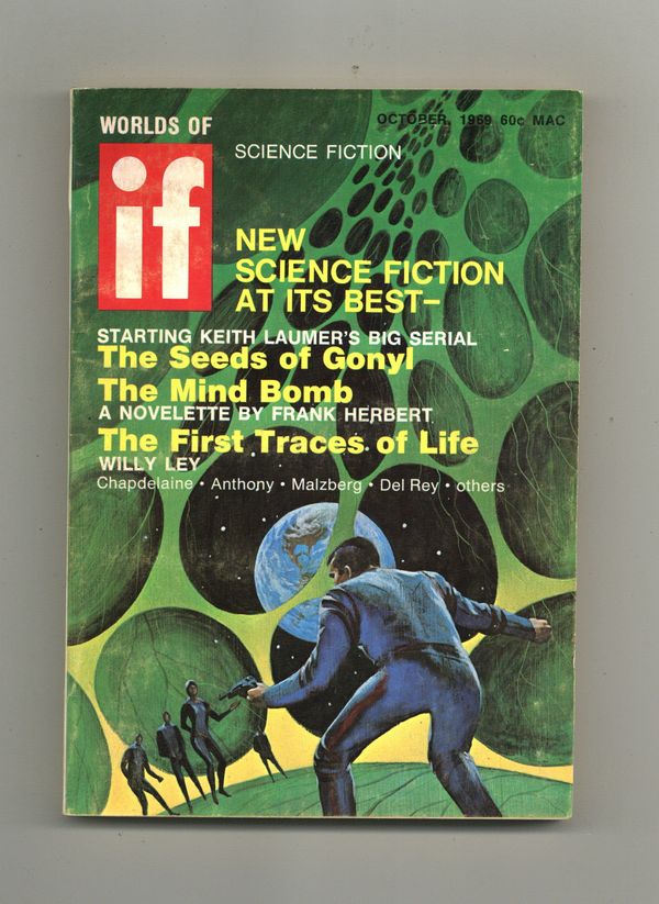 Published Oct 1969 by Quinn Publishing Co..$22.00Oct 1969. Volume 19, No. 8 (Whole No. 141) Cover by Gaughan. Science fiction stories by Frank Herbert, Piers Anthony, W. MacFarlane, Keith Laumer's "The Seeds of Gonyl - Part 1 of 3", Barry Malzberg, and Steven Guy Oliver. 5.25-in. x 7.5-in.; black and white; 160 newsprint pages. Cover price $0.60.